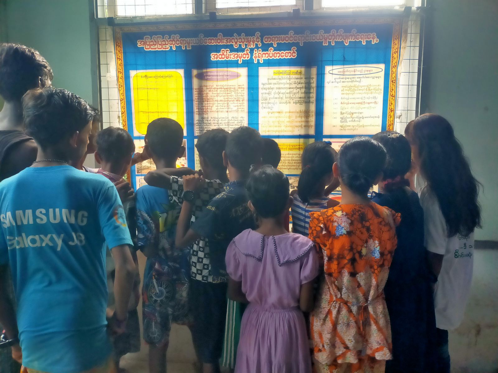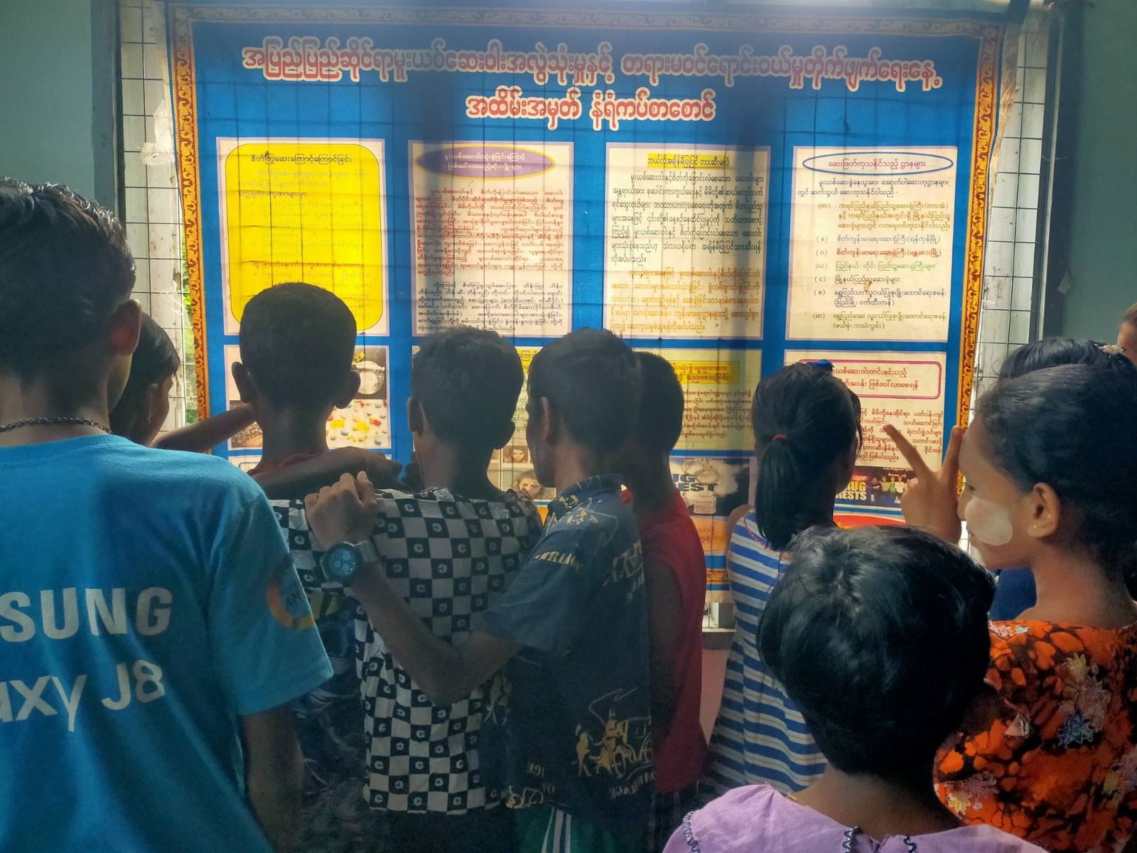 ထို့နောက် ပြန်ကြားရေးနှင့်ပြည်သူ့ဆက်ဆံရေးဦးစီးဌာနမှ ကျောင်းသား၊ ကျောင်းသူများ ဖတ်ရှုလေ့လာနိုင်ရန် ရုပ်ပြပုံပြင်များ၊ စာစောင်များစသည့် ကလေးများ အသိပညာတိုးပွားရေးစာအုပ်စာပေများ၊ စာဖတ်ရှိန်မြှင့်တင်ရေးတို့နှင့် ပတ်သက်သည့် ဆောင်းပါး၊ ကဗျာ၊ ကာတွန်းသိမှတ်ဖွယ်ရာများ စသည့်အသိပညာပေးနံရံကပ်စာစောင်များ ဓာတ်ပုံများကို ခင်းကျင်းပြသခဲ့ရာ ကျောင်းသား၊ ကျောင်းသူများက စိတ်ပါ၀င်စားစွာ ကြည့်ရှုလေ့လာခဲ့ကြောင်း သိရသည်။