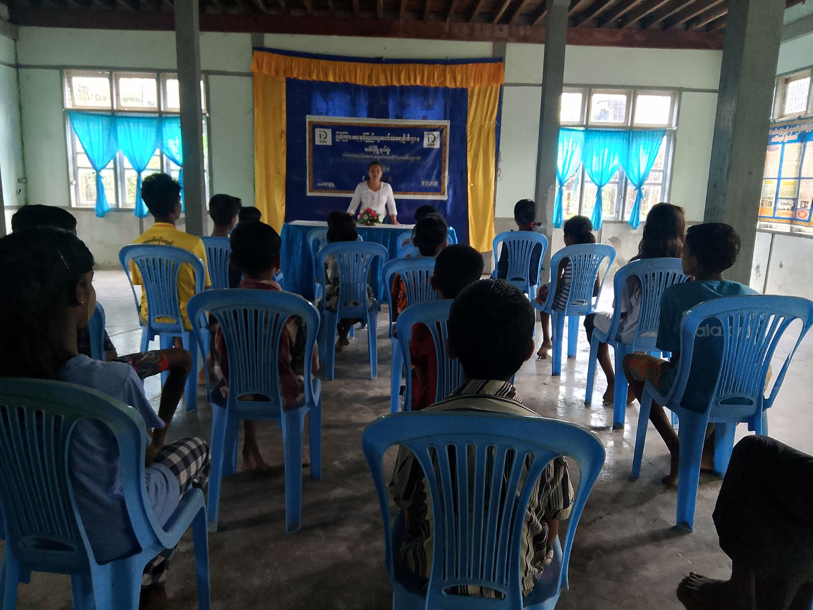 ရှေးဦးစွာ ပြန်ကြားရေးနှင့်ပြည်သူ့ဆက်ဆံရေးဦးစီးဌာနမှ ဦးစီးအရာရှိ ဒေါ်တင်ဇာစိုးက အရွယ်မရောက်သေးသည့် ကလေးငယ်များကို အလုပ်သမားစေခိုင်းပါက သတ်မှတ်ထားသည့် စည်းကမ်းချက်များအတိုင်း ဆောင်ရွက်ကြရန်လိုအပ်ပါကြောင်း၊ အရွယ်မရောက်သေးသည့် ကလေးငယ်များအား မတရားအလုပ်စေခိုင်းမှုမှ ကာကွယ်ရန်၊ မိမိဘဝတိုးတက်မှုရရှိလာအောင် စာများများ ဖတ်ကြပါရန် မူးယစ်ဆေးဝါး၏ ဆိုးကျိုးများ၊ လူကုန်ကူးမှု၏ ဆိုးကျိုးများ၊ ယာဥ်စည်းကမ်း၊ လမ်းစည်းကမ်းများကို ကျောင်းသား/ကျောင်းသူများက လိုက်နာဆောင်ရွက်ကြရန် ဟောပြောခဲ့သည်။