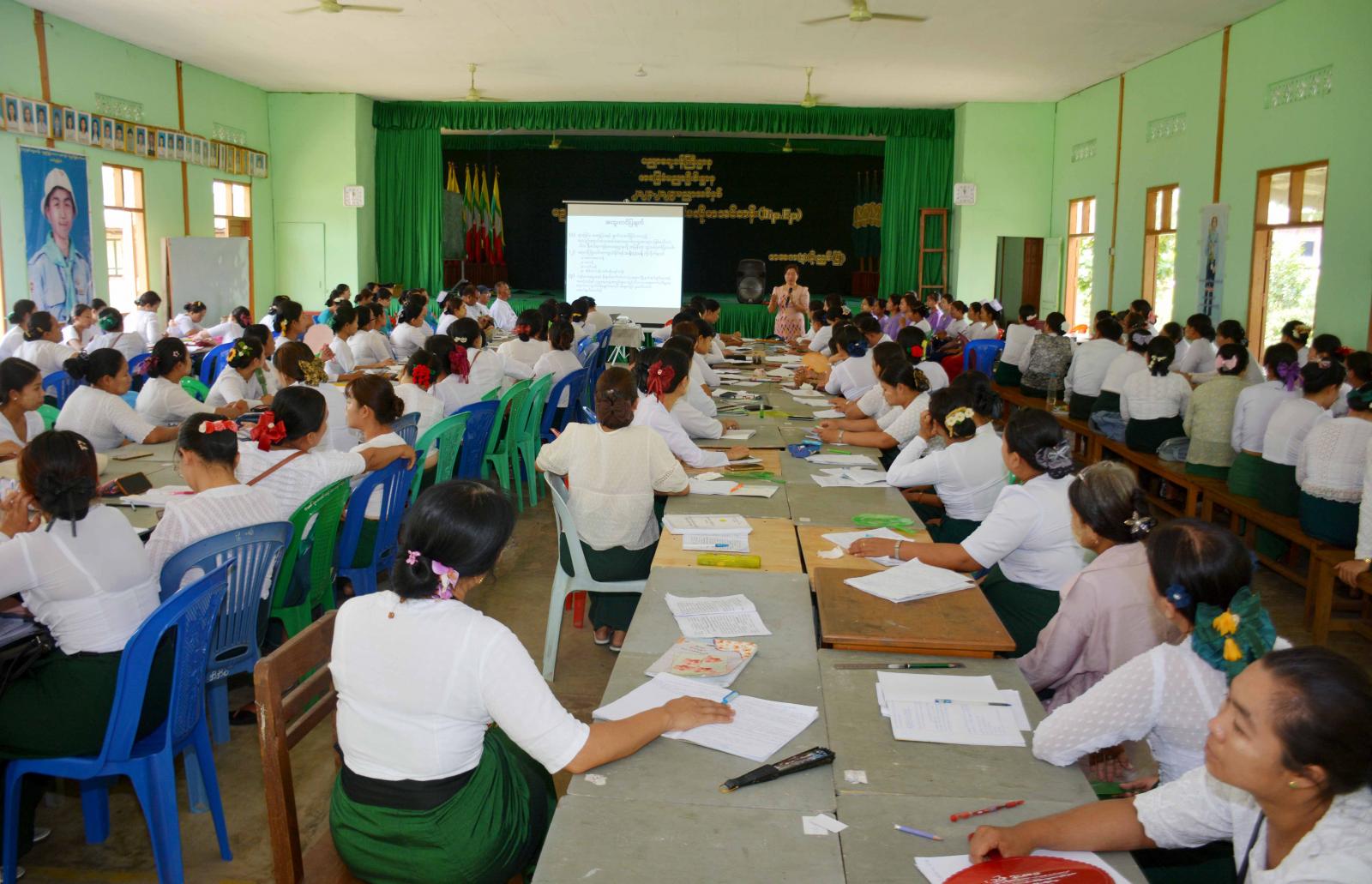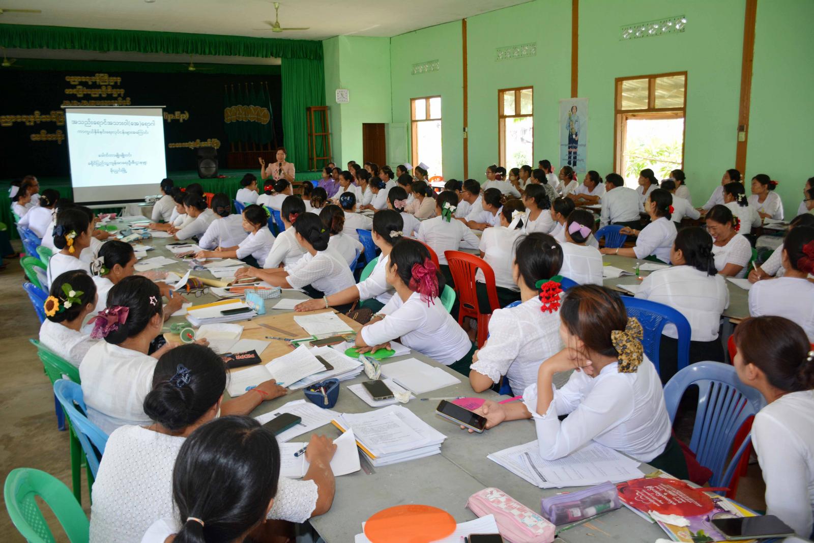 ဆက်လက်၍ မြို့နယ်ကျန်းမာရေးမှူး ဦးစံထွေးက သွေးလွန်တုပ်ကွေးရောဂါ ကြိုတင်ကာကွယ် နိုမ်နင်းရေးနှင့်ပတ်သက်၍ သွေးလွန်တုပ်ကွေးရောဂါ၏ လက္ခဏာများ၊ သွေးလွန်တုပ်ကွေးရောဂါ ကူးစက်ပြန့်ပွားမှုအခြေအနေများ၊ သွေးလွန်တုပ်ကွေးဖြစ်ပွားတတ်သည့် ဆောင်ရန် ရှောင်ရန်အချက်များ၊ ၎င်းရောဂါကြိုတင်ကာကွယ်ရမည့် နည်းလမ်းများ၊ ဖုံး သွန် လဲ စစ် လုပ်ငန်းများနှင့် အဘိတ်ဆေးခပ်ခြင်းလုပ်ငန်းများစသည့် အကြောင်းအရာများကို အဆိုပါစာသင်ကျောင်းတွင် ပညာရေးနှင့် သင်ပြနည်းပညာ ဒီပလိုမာသင်တန်း တက်ရောက်နေကြသည့် မူလတန်းအဆင့် သင်တန်းဆရာ ဆရာမများအား ဟောပြောခဲ့ကြသည်။