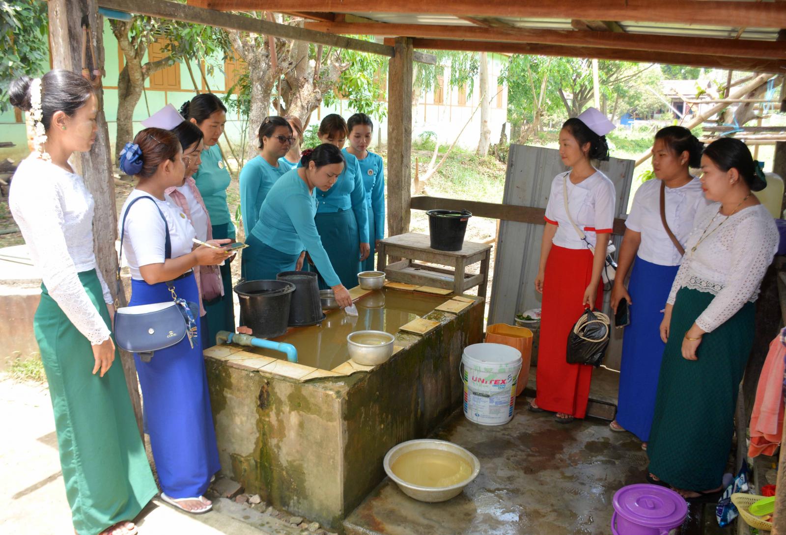 ထို့နောက် ဟောပြောပွဲအပြီးတွင် ကျောင်းအတွင်းရှိ ရေတွင်းရေကန်များအား ကျန်းမာရေးဝန်ထမ်းများ၊ ခရိုင်/မြို့နယ်မှ မိခင်နှင့်ကလေးစောင့်ရှောက်ရေးအသင်းဝင်များနှင့် အမျိုးသမီးရေးရာအဖွဲ့ဝင်များက ဖုံး သွန် လဲ စစ် လုပ်ငန်းများနှင့် အဘိတ်ဆေးခပ်ခြင်း လုပ်ငန်းများကို ဆောင်ရွက်ခဲ့ကြကြောင်း သိရသည်။