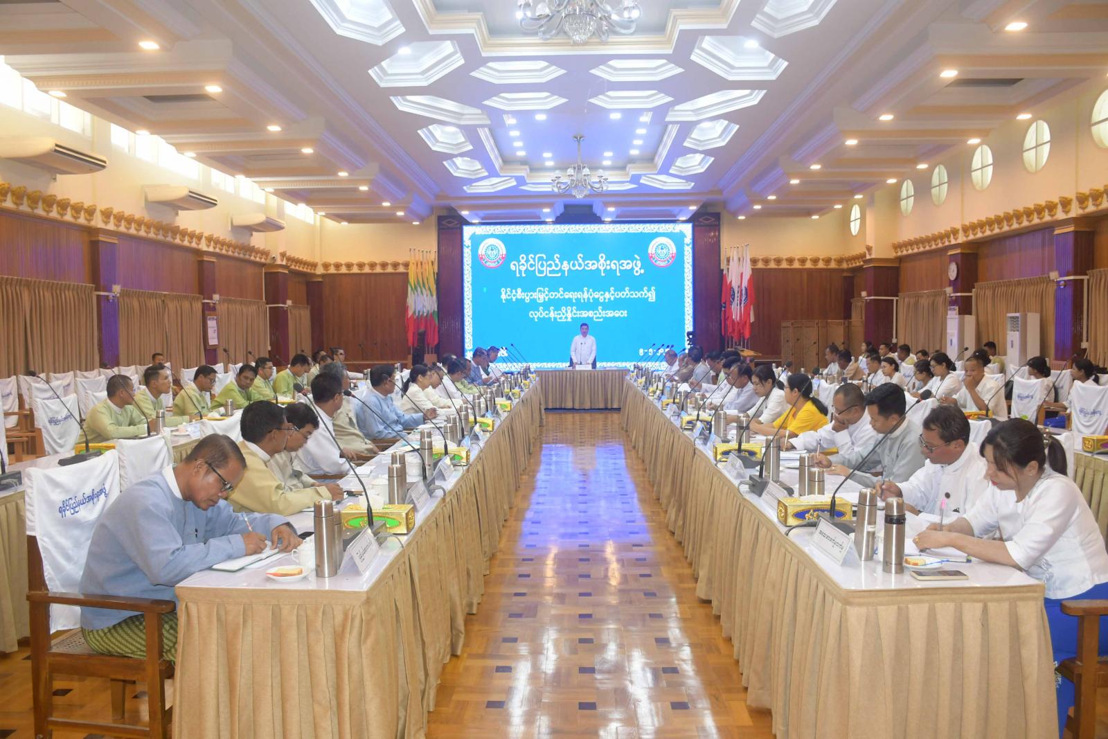ညှိနှိုင်းအစည်းအဝေးတွင် ရခိုင်ပြည်နယ်ဝန်ကြီးချုပ် ဦးထိန်လင်းက ယခုအစည်းအဝေးသည် ရခိုင်ပြည်နယ် ဖွံ့ဖြိုးတိုးတက်ရေးစေအတွက် ရရှိထားသည့် နိုင်ငံ့စီးပွား မြှင့်တင်ရေးရန်ပုံငွေမှ မတည်ထောက်ပံ့ငွေ (၁၀) ဘီလီယံနှင့်ပတ်သက်၍ ကဏ္ဍအလိုက် ထုတ်ချေးထားငွေများ ပြန်လည်ကောက်ခံရရှိမှု အခြေအနေ၊ ကောက်ခံရန်ကျန်ရှိနေမှု အခြေအနေနှင့် ရန်ပုံငွေလက်ကျန် အခြေအနေများကို တက်ရောက်လာကြသည့် ကော်မတီများမှ သက်ဆိုင်ရာကဏ္ဍအလိုက် တင်ပြဆွေးနွေးနိုင်ရေးအတွက် ကျင်းပပြုလုပ်ခြင်းဖြစ်ကြောင်း၊ နိုင်ငံ့စီးပွားမြှင့်တင်ရေးရန်ပုံငွေ မတည်ထောက်ပံ့ငွေ (၁၀) ဘီလီယံရရှိခဲ့ခြင်းမှာ ကိုဗစ် ၁၉ ကပ်ရောဂါကြောင့် ထိခိုက်ကျဆင်းခဲ့သော ပြည်သူလူထု၏ လူမှုစီးပွားဘဝနှင့် နိုင်ငံတော်၏ စီးပွားရေးအခြေအနေကို ပြန်လည်မြှင့်တင်နိုင်ရန်အတွက် နိုင်ငံတော်စီမံအုပ်ချုပ်ရေးကောင်စီ၏လမ်းညွှန်စီစဉ်မှုဖြင့် ရခိုင်ပြည်နယ် အတွက်ရရှိခဲ့ခြင်းဖြစ်ကြောင်း၊ ရရှိရန်ပုံငွေကျပ် (၁၀) ဘီလီယံကို ကဏ္ဍ ၅ ခုသို့ ခွဲဝေပြီး ထုတ်ချေးခဲ့ရာ စိုက်ပျိုးရေးကဏ္ဍ၊ မွေးမြူရေး(အသား) ကဏ္ဍ၊ မွေးမြူရေး(ငါး) ကဏ္ဍ၊ သမဝါယမ၊ အသေးစား အလတ်စားကဏ္ဍ၊ အစိုးရအထူးကိစ္စရပ်ကဏ္ဍများသို့ အသီးသီး ထုတ်ချေးပေးခဲ့ရာ စုစုပေါင်း ငွေကျပ် ၆ ဒသမ ၃၉၅ ဘီလီယံ ထုတ်ချေးထားပြီးဖြစ်ကြောင်း၊ နိုင်ငံ့စီးပွားမြှင့်တင်ရေးရန်ပုံငွေ မတည်ထောက်ပံ့ငွေများ ထုတ်ချေးပေးရာတွင် ရခိုင်ပြည်နယ်အစိုးရအဖွဲ့ နိုင်ငံ့စီးပွားမြှင့်တင်ရေးရန်ပုံငွေမှမတည်ရန်ပုံငွေ ထူထောင်ခြင်းလုပ်ငန်းစီမံကိန်း အကောင်အထည်ဖော်ရေး လက်စွဲစာစောင် (SOP)ရေးဆွဲပြီး လက်စွဲစာစောင်နှင့်အညီ ရန်ပုံငွေထုတ်ချေးမှုများ ဆောင်ရွက်ခဲ့ကြောင်း၊ သို့သော် ပြည်နယ်၏ နယ်မြေဒေသ အခြေအနေများအရ ထုတ်ချေးပေးမှုများကို ခေတ္တဆိုင်းငံ့ထားရှိခဲ့ကြောင်း၊ ကော်မတီများအနေဖြင့် ကဏ္ဍအလိုက် လက်ရှိထုတ်ချေးထားသည့်ငွေများနှင့်ပတ်သက်၍ လုပ်ငန်းများ ဆောင်ရွက်နိုင်ခြင်း ရှိ/မရှိနှင့် ထပ်မံ၍လုပ်ငန်းဆောင်ရွက်လိုသူများ ရှိပါကလည်း ထုတ်ချေးပေးနိုင်မည့် အခြေအနေများကို ဆွေးနွေးတင်ပြပေးကြစေလိုကြောင်းနှင့် ကော်မတီအသီးသီးမှ လက်ကျန်ငွေများနှင့် ထုတ်ချေးထားငွေများ ပြန်လည်ကောက်ခံနိုင်ရေးတို့နှင့်ပတ်သက်၍ ဆက်လက်ဆောင်ရွက်နိုင်မည့် အစီအစဉ်များကို သက်ဆိုင်ရာကဏ္ဍအလိုက် ကော်မတီများမှ ဝိုင်းဝန်းဆွေးနွေး ပေးကြစေလိုကြောင်း ပြောကြားသည်။