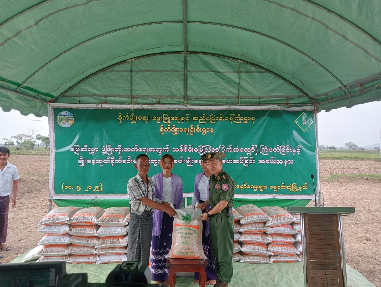 ထို့နောက် မွန်ပြည်နယ်ဝန်ကြီးချုပ်နှင့် တာဝန်ရှိသူများက တောင်သူများအား စပါးမျိုးစေ့ ထောက်ပံ့ခြင်းနှင့် တောင်သူ ဦးသန်းထွန်းဝင်း၏ မိုးစပါးစိုက်ဧက(၁၀.၉၆) ဧကအတွင်း သစ်စိမ်းမြေဩဇာ (ပိုက်ဆံလျှော်) မျိုးစေ့များ ကြဲပက်ပေးခဲ့ပြီးနောက် တောင်သူများတင်ပြသည့် လိုအပ်ချက်များကို ပေါင်းစပ်ညှိနှိုင်း ဆောင်ရွက်ခဲ့ကြောင်း သိရသည်။