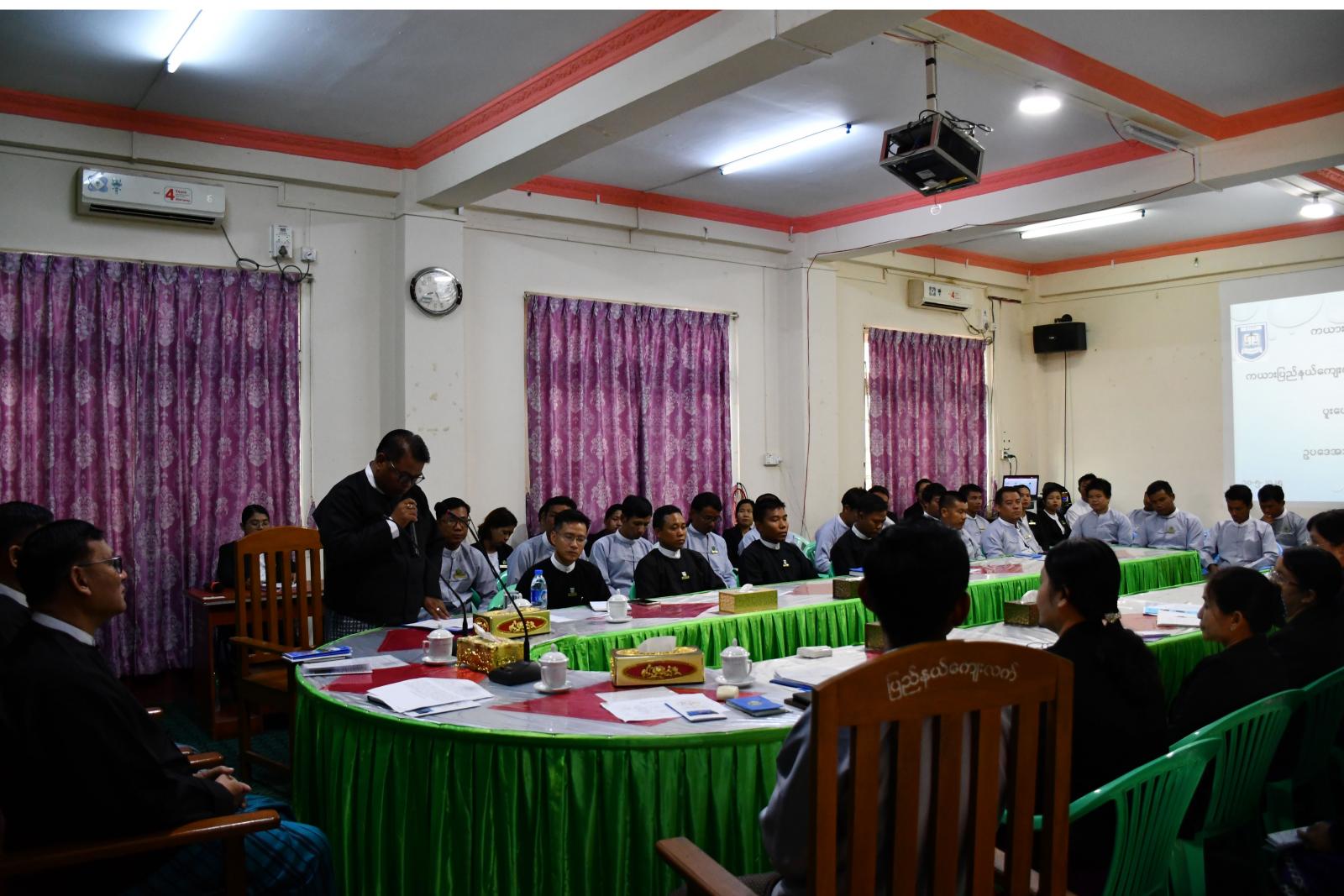 ထို့နောက် ပြည်နယ်ကျေးလက်ဒေသဖွံ့ဖြိုးတိုးတက်ရေးဦးစီးဌာန ညွှန်ကြားရေးမှူး ဦးစောဒီးဒီမှ သင်တန်းဖွင့်လှစ်ရခြင်းအကြောင်းနှင့် ပြည်နယ်ဥပဒေအရာရှိ ဦးကျော်မင်းနိုင်က သင်တန်းတွင် ပို့ချမည့် ဘာသာရပ်များအကြောင်း အသီးသီးရှင်းလင်းပြောကြားခဲ့ပြီး စုပေါင်းမှတ်တမ်းတင် ရိုက်ကူးခဲ့ကြသည်။