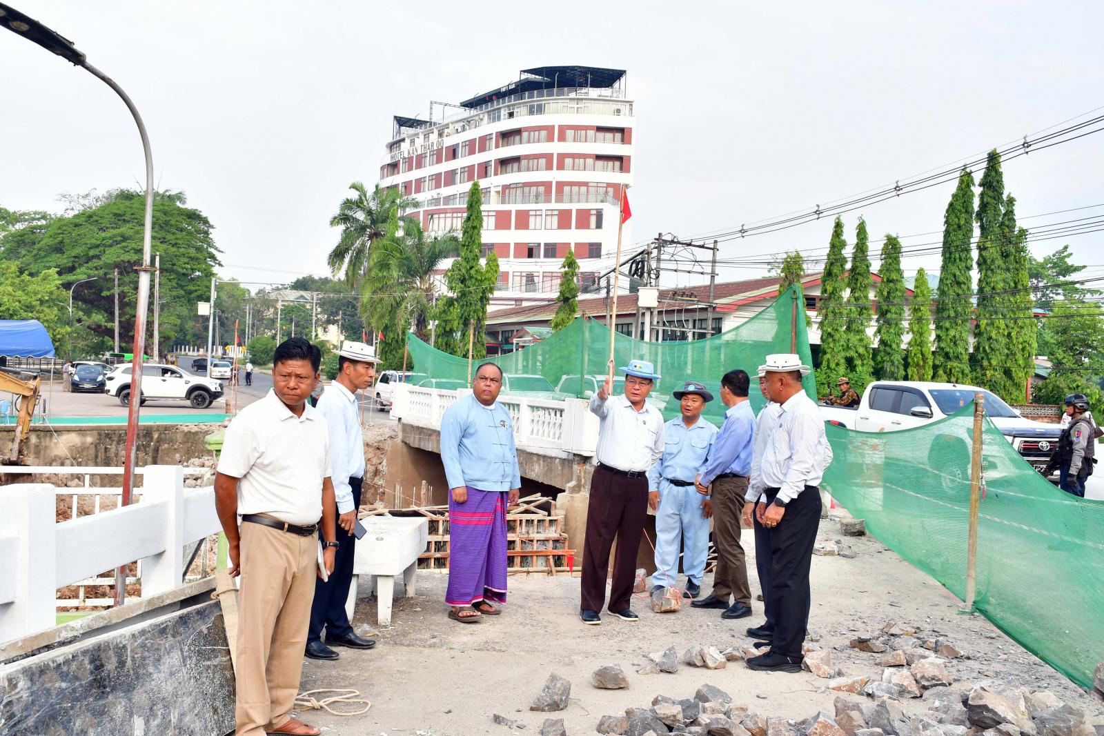 ဦးစွာ ပြည်နယ်ဝန်ကြီးချုပ်နှင့် တာဝန်ရှိသူများသည် ဘားအံမြို့တွင်း ပြည်နယ်စည်ပင်သာယာရေးအဖွဲ့၏ ၂၀၂၅-၂၀၂၆ ဘဏ္ဍာရေးနှစ် ဗြဟ္မာကြီးချောင်းတံတား တိုးချဲ့ခြင်းလုပ်ငန်းအား ကြည့်ရှုစစ်ဆေးရာ ပြည်နယ်စည်ပင်သာယာရေးအဖွဲ့ ညွှန်ကြားရေးမှူး သူရမြင့်သူနှင့် အင်ဂျင်နီယာမှူးကြီး ဦးစိုးလွင်တို့က ယခင်မူလတံတား ၂၂ ပေ အကျယ်မှာ လမ်းကွေ့ဖြစ်၍ ယာဉ်အန္တရာယ်ဖြစ်စေပြီး သွားလာမှုခက်ခဲစေသဖြင့် တန်(၆၀)ခံဝန်အားရှိသော သံကူ ကွန်ကရစ် အမျိုးအစား ၁၄ ပေအကျယ်ကို တိုးချဲ့တည်ဆောက်နေသည့် လုပ်ငန်းစဉ်အား ရှင်းလင်းတင်ပြကြပြီး ပြည်နယ်ဝန်ကြီးချုပ်က သတ်မှတ်စံချိန်စံနှုန်းများနှင့်အညီ အချိန်မီပြီးစီးနိုင်ရေးကြိုးပမ်း ဆောင်ရွက်ကြရန်မှာကြား၍ တိုးချဲ့တံတား တည်ဆောက်ရေးလုပ်ငန်းခွင်အား လှည့်လည်ကြည့်ရှုစစ်ဆေးကာ တာဝန်ရှိသူများအား လိုအပ်သည် များမှာကြားခဲ့သည်။