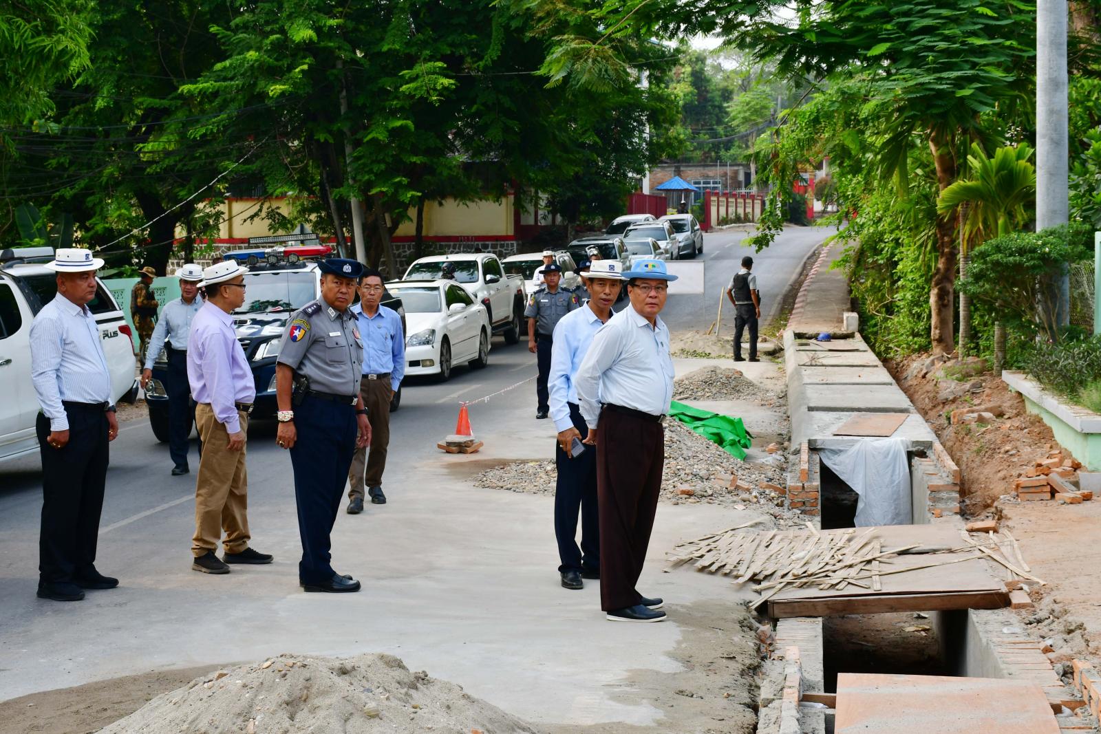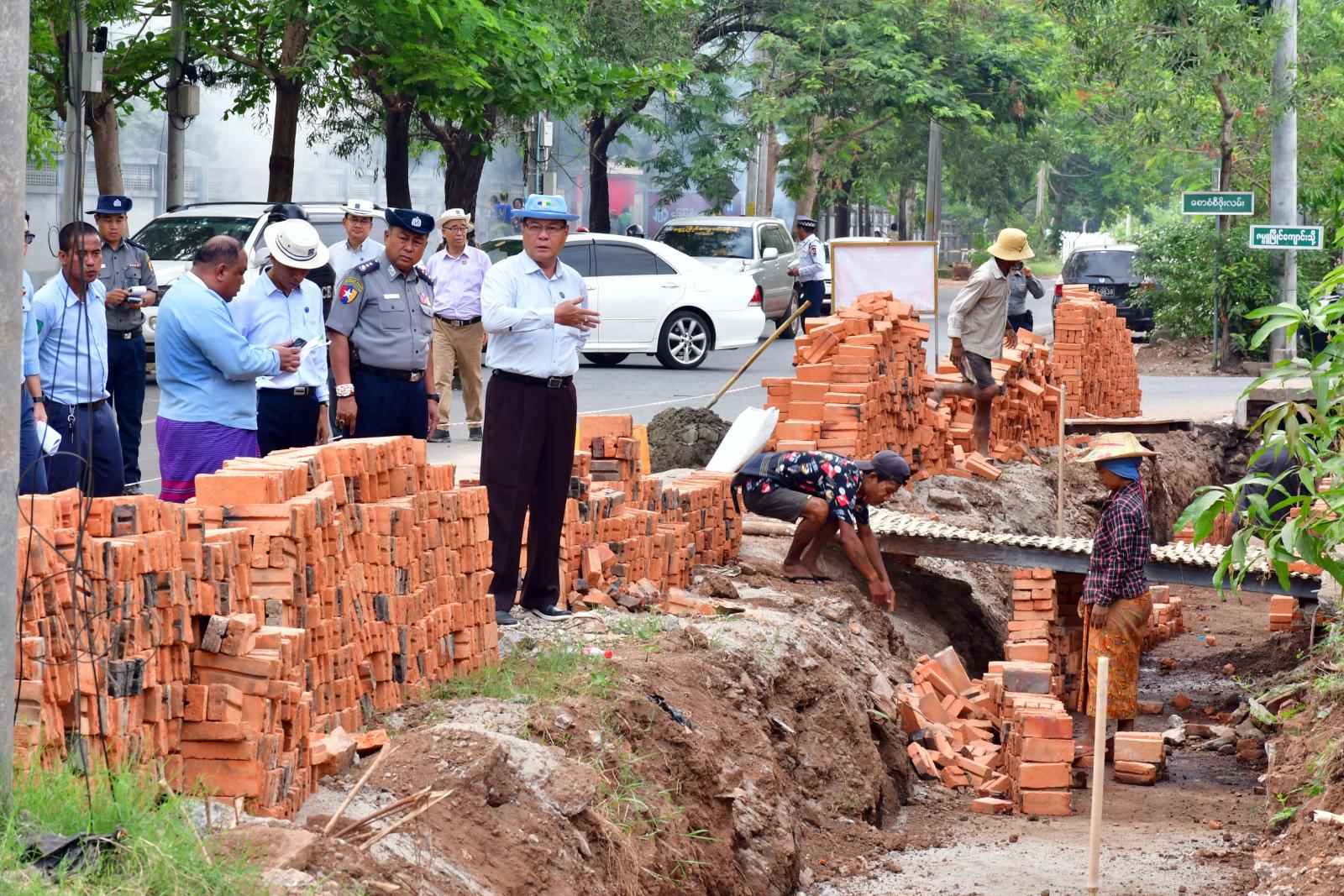 အလားတူ ပြည်နယ်ဝန်ကြီးချုပ်နှင့်အဖွဲ့သည် ဘားအံမြို့ပေါ်ရပ်ကွက် မြေနိမ့်ပိုင်းနေရာများတွင် မိုးရာသီ ကာလရေကြီးရေလျှံမှုလျော့ချနိုင်ရေးနှင့် ရေစီးရေလာကောင်းမွန်စေရေးအတွက် ဘားအံမြို့၊ အမှတ်(၁)ရပ်ကွက်၊ အ.ထ.က(၁)ကျောင်းလမ်း၊ ရေမြောင်းပလက်ဖောင်း ပြုလုပ်ခြင်း(၅၇၃)ပေ၊ အမှတ်(၇)ရပ်ကွက် သခင်မြလမ်း ဘေးဝဲယာကျောက်စီရေမြောင်း ပြုလုပ်ခြင်း(၂၁၇၀)ပေ၊ မန်းဘခိုင်လမ်းကျောက်စီရေမြောင်း ပြုလုပ်ခြင်း(၄၁၂၀)ပေ၊ မမြလေးလမ်း(၉၁၀)ပေ၊ မင်းရဲကျော်စွာလမ်း(၁၄၄၀)ပေ၊ ဘုရင်းနောင်လမ်း(၂၅၈၀)ပေနှင့် အမှတ်(၇)ရပ်ကွက် အတွင်း Box Culvert (၂၈)စင်း ပြုလုပ်ခြင်းနှင့် အမှတ်(၆)ရပ်ကွက် သီရိဈေးနှင့် စောစံစီဖိုးလမ်းကြား သီရိလမ်း ရေမြောင်းပလက်ဖောင်းပြုလုပ်ခြင်းတို့အား ကြည့်ရှုစစ်ဆေးရာ ပြည်နယ်စည်ပင်သာယာရေးအဖွဲ့ ညွှန်ကြားရေးမှူးနှင့်တာဝန်ခံအင်ဂျင်နီယာများက လုပ်ငန်းဆောင်ရွက်မှု အခြေအနေများကို ရှင်းလင်းတင်ပြကြပြီး ပြည်နယ်ဝန်ကြီးချုပ်က သတ်မှတ်စံချိန်စံနှုန်းများနှင့်အညီ အချိန်မီပြီးစီးနိုင်ရေး ကြိုးပမ်းဆောင်ရွက်ကြရန် တာဝန်ရှိသူများအား မှာကြားခဲ့ကြောင်း သတင်းရသည်။