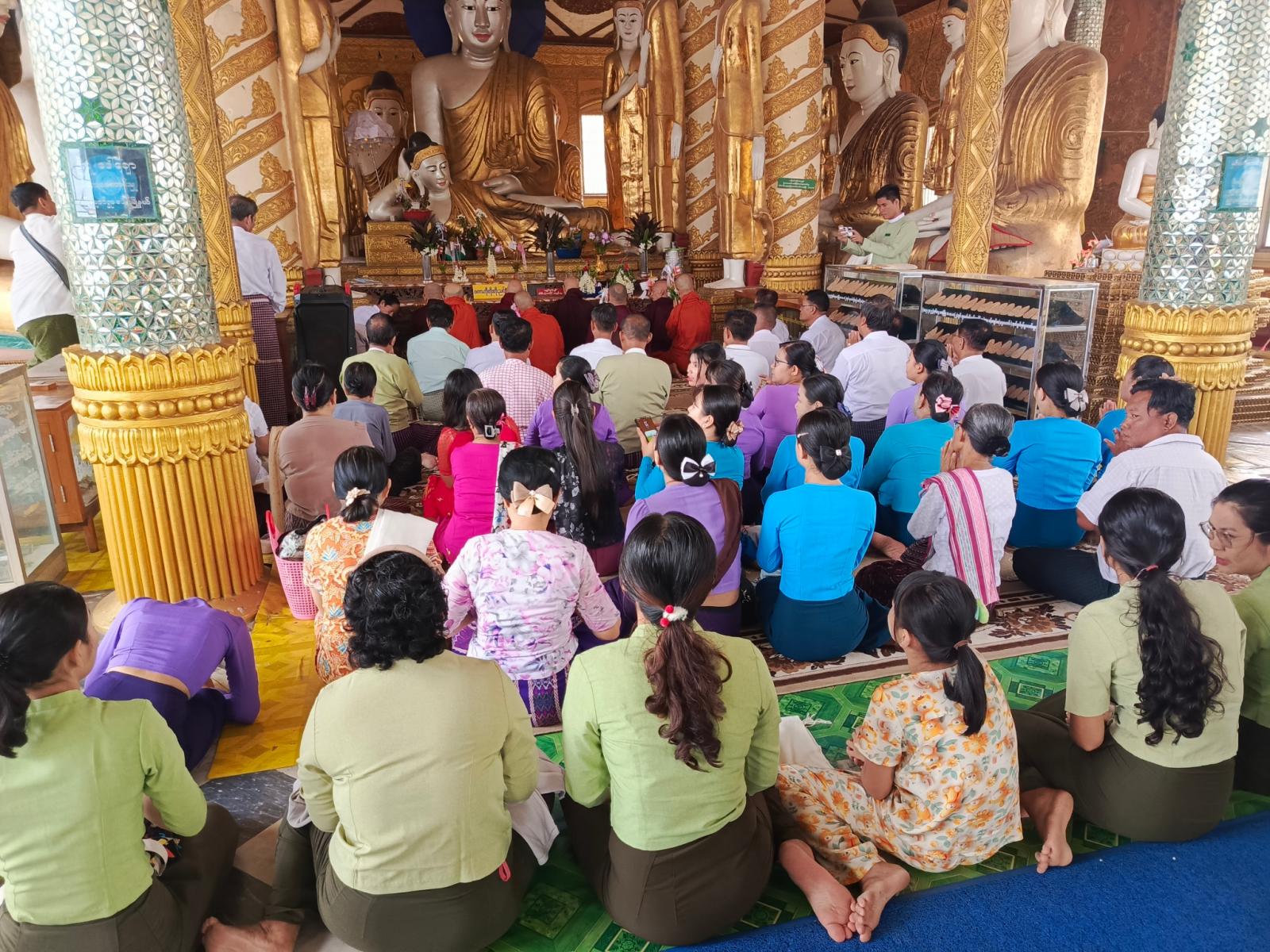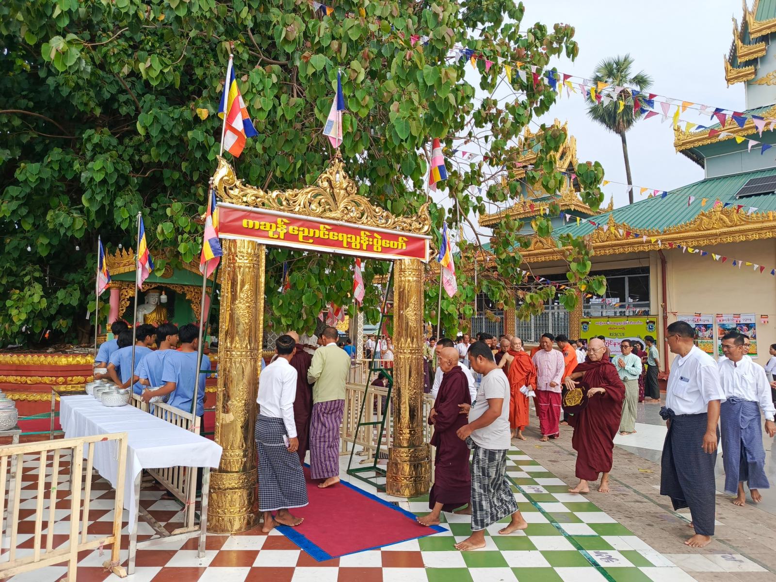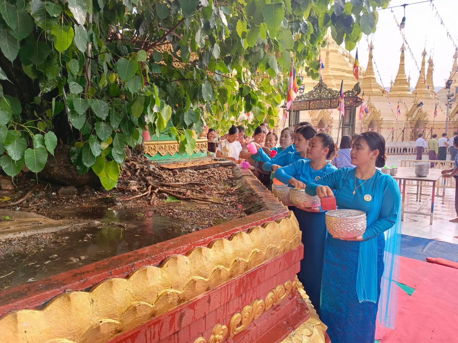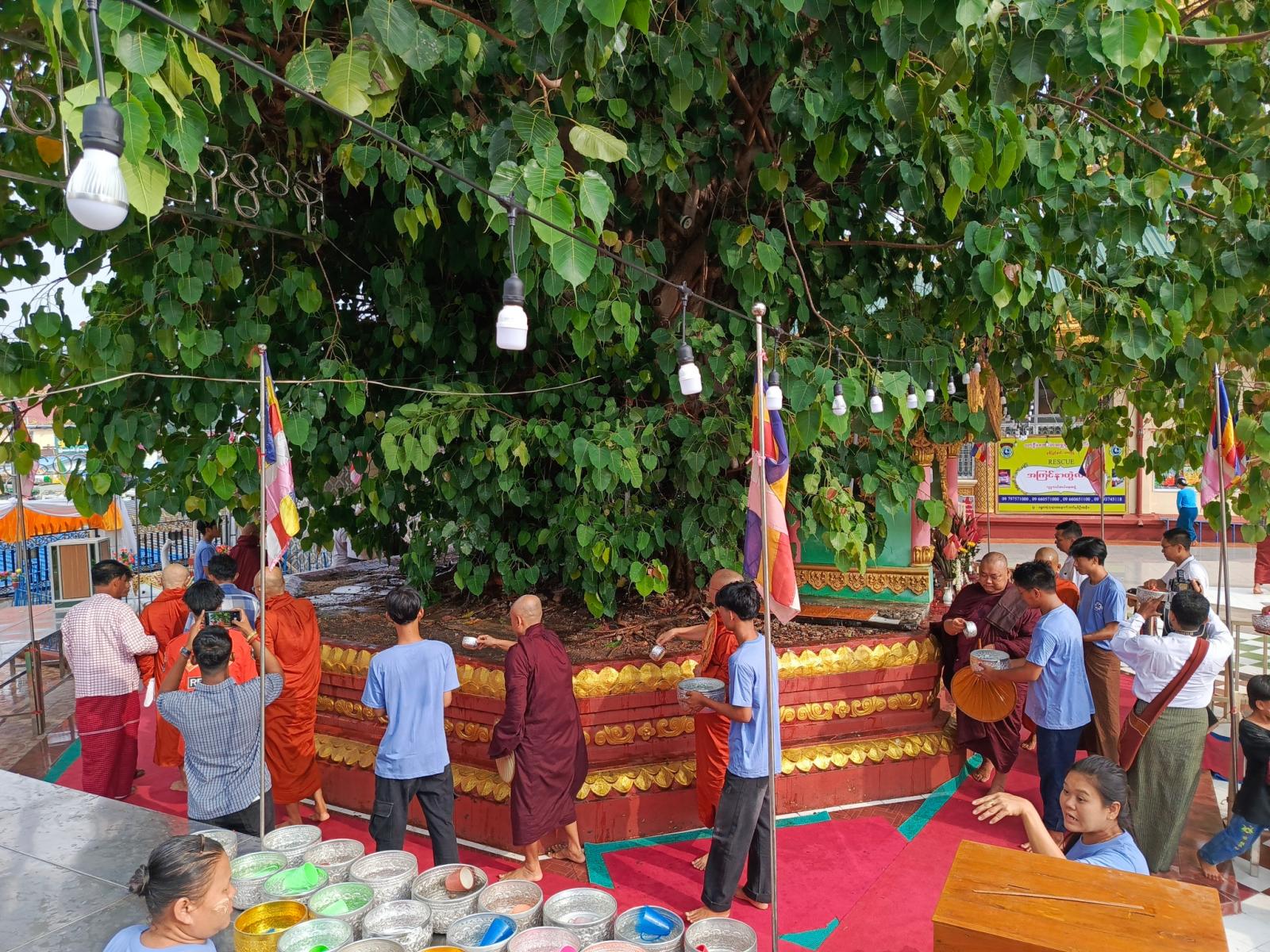 ထို့နောက် သံဃာတော်အရှင်သူမြတ်များနှင့်အတူ နယ်မြေခံတပ်နယ်မှူး၊ ခရိုင်နှင့် မြို့နယ်စီမံအုပ်ချုပ်ရေးအဖွဲ့ဝင်များ၊ ဌာနဆိုင်ရာများ၊ ရပ်ကွက်/ကျေးရွာအသီးသီးမှ ဒေသခံပြည်သူများက ဗောဓိညောင်ပင်အား ညောင်ရေသွန်းလောင်းခြင်း ညောင်ထောက်ကုသိုလ်ပြုခြင်းတို့ကို စည်ကားသိုက်မြိုက်စွာ ပြုလုပ်ခဲ့ကြကြောင်း သိရသည်။
