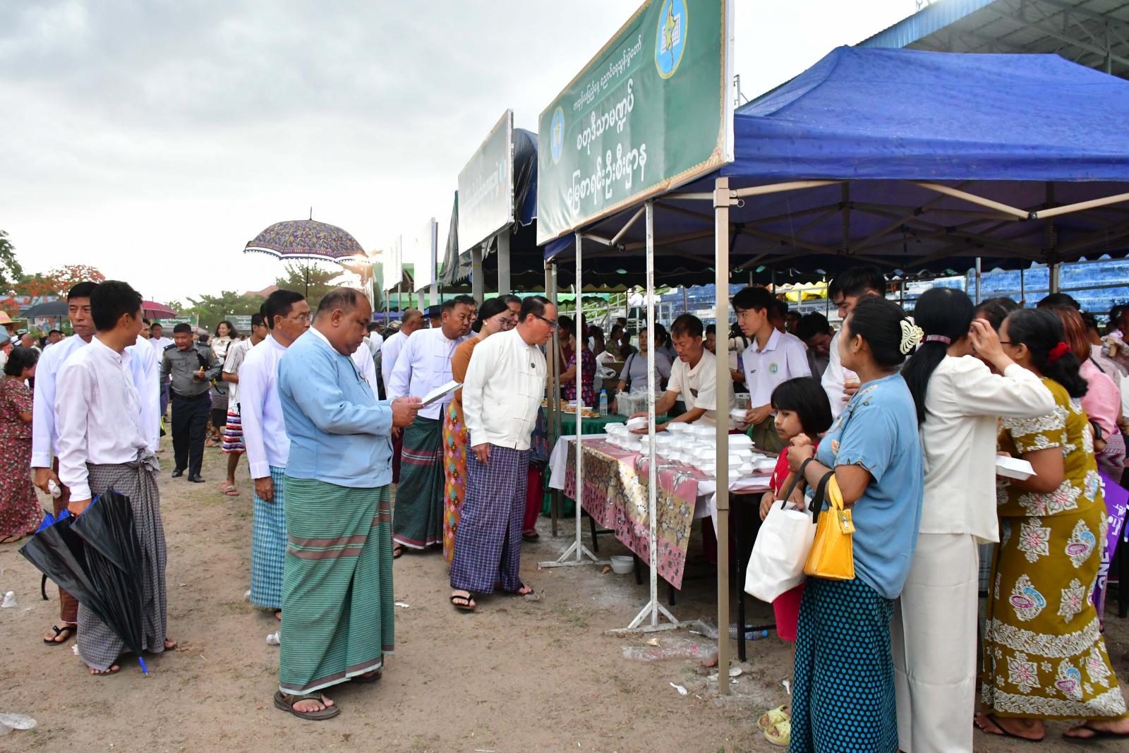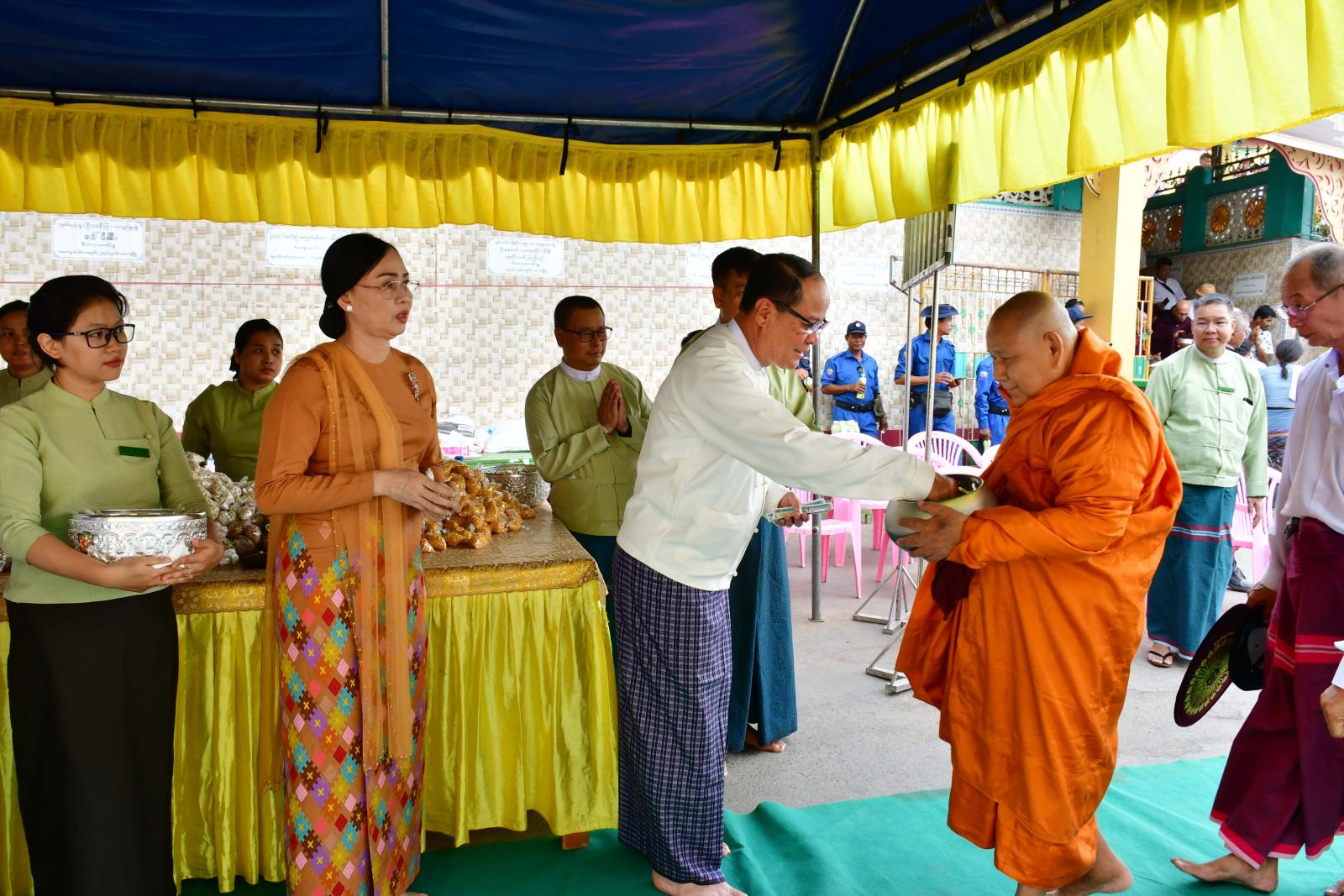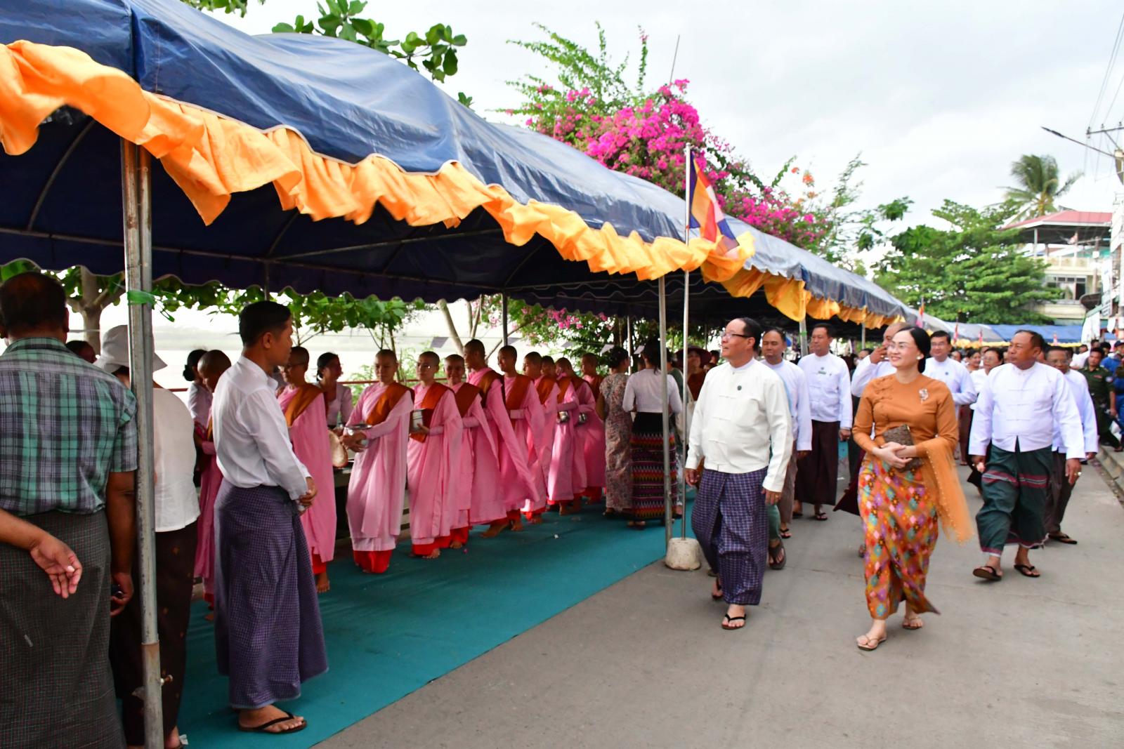 ထို့နောက် အမိတာရာမရဲကျောင်းတိုက်ဆရာတော် ဘဒ္ဒန္တဂုဏာလင်္ကာရအမှူးပြုသော ရွှေယဉ်မျှော် ပြည်တော်ဧစေတီတော်၏ ဩဝါဒါစရိယဆရာတော်ကြီးများ ဦးဆောင်၍ ဘားအံမြို့ပေါ်ရှိ ဘုန်းတော်ကြီးကျောင်း ၅၅ ကျောင်း၊ သီလရှင်ကျောင်း ၁၄ ကျောင်းတို့မှ ဆရာတော်၊ သံဃာတော်၊ သာမဏေ၊ သီလရှင် စုစုပေါင်း ၂၆၈၀ ပါးအား မိုးတွင်းကာလဆွမ်းကိစ္စခက်ခဲပင် ပန်းမှုမရှိစေရေးအတွက် ပြည်နယ်ဝန်ကြီးချုပ်၊ ပြည်နယ်တရားလွှတ်တော်တရား သူကြီးချုပ်၊ ပြည်နယ်အစိုးရအဖွဲ့ဝင်များ၊ ပြည်နယ်အမျိုးသမီးရေးရာအဖွဲ့နာယကနှင့်အဖွဲ့ဝင်များ၊ ပြည်နယ်၊ ခရိုင်၊ မြို့နယ်အဆင့်ဌာနဆိုင်ရာများ၊ နိုင်ငံရေးပါတီများ၊ လူမှုရေးအသင်းအဖွဲ့များနှင့် ဒေသခံတိုင်းရင်းသား ပြည်သူများက မတ်ပဲ၊ ကုလားပဲ၊ ပဲဝါခြမ်း၊ ပဲဖြူလေး အစရှိသော ပဲအမျိုးမျိုးများကို စေတနာသဒ္ဒါ တရားထက်သန်စွာဖြင့် လောင်းလှူခဲ့ကြသည်။