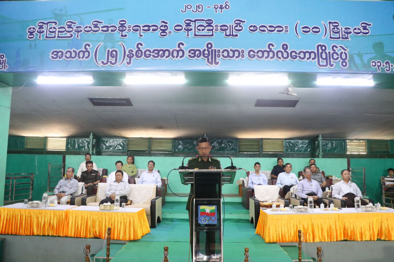 ရှေးဦးစွာ ပြိုင်ပွဲဝင်အားကစားသမားများမှ ကွင်းအတွင်းနေရာယူကြပြီး ပြည်နယ်လုံခြုံရေးနှင့် နယ်စပ်ရေးရာဝန်ကြီးက မွန်ပြည်နယ် (၁၀)မြို့နယ် အသက်(၂၅)နှစ်အောက် အမျိုးသားဘော်လီဘောပြိုင်ပွဲကို ကျင်းပပြုလုပ်ပေးခြင်းဖြင့် ဘော်လီဘောအားကစား တိုးတက်မြင့်မားရေးကို အထောက်အကူပြုစေရန်၊ ထူးချွန်ထက်မြက်သည့် မျိုးဆက်သစ် အားကစားသမားများ ပေါ်ထွက်လာစေရန်၊ ဘော်လီဘောပြိုင်ပွဲများတွင် မွန်ပြည်နယ်အသင်း အောင်မြင်မှုရရှိစေရန်၊ နိုင်ငံလက်ရွေးစင် ဘော်လီဘောအားကစားသမားများ မွန်ပြည်နယ်မှ ပေါ်ထွက်လာစေရန်စသည့် ရည်ရွယ်ချက်ကောင်းများနှင့် ကျင်းပပေးရခြင်းဖြစ်ကြောင်း၊ မွန်ပြည်နယ် အမျိုးသားဘော်လီဘောအသင်းဟာ ပြည်နယ်နှင့်တိုင်းဒေသကြီး အမျိုးသားဘော်လီဘောပြိုင်ပွဲမှာ တံခွန်စိုက်ဒိုင်းဆုရရှိသည်အထိ အောင်မြင်မှုများရရှိခဲ့သလို မြန်မာ့လက်ရွေးစင် ဘော်လီဘောအားကစားသမားများစွာ မွေးထုတ်ပေးနိုင်တဲ့ ပြည်နယ် တစ်ခုအဖြစ် မှတ်တမ်းတင်နိုင်ခဲ့ကြောင်း၊ မွန်ပြည်နယ်ရဲ့ အားကစားအဆင့်အတန်း တိုးတက်မြင့်မားရေးနှင့် ပြည်နယ်နှင့်တိုင်းဒေသကြီး အားကစားပြိုင်ပွဲများတွင် အောင်မြင်မှုရရှိစေရန်အတွက် လူရွေးချယ်ရေးစီမံချက် ၊ လေ့ကျင့်ရေးစီမံချက် ၊ အောင်နိုင်ရေး စီမံချက်များရေးဆွဲ၍ သက်ဆိုင်ရာ အားကစားဆပ်ကော်မတီများနှင့် ပူးပေါင်းဆောင်ရွက်ကြရမှာဖြစ်ကြောင်း၊ ပြိုင်ပွဲဝင်အားကစားသမားများမှ ချမှတ်ထားသည့် စည်းမျဉ်း/စည်းကမ်းဘောင်အတွင်းက ကြိုးစားယှဉ်ပြိုင်သွားကြရန်၊ ဒိုင်လူကြီးများကလည်း ဘက်လိုက်မှုကင်းစွာနဲ့ မှန်မှန်ကန်ကန် ဖြတ်ဆောင်ရွက်ပေးကြရန်၊ အားပေးကြည့်ရှုကြတဲ့ ပရိသတ်အဆင့်အတန်းမြင့်မြင့် အားပေးကြည့်ရှုကြရန် ပြောကြားကာ ပြိုင်ပွဲဝင်အားကစားသမားများမှ အားကစားသစ္စာ အဓိဌာန်ရွတ်ဆိုပြီး ကွင်းအတွင်းမှ ပြန်လည်ထွက်ခွာခဲ့ကြသည်။