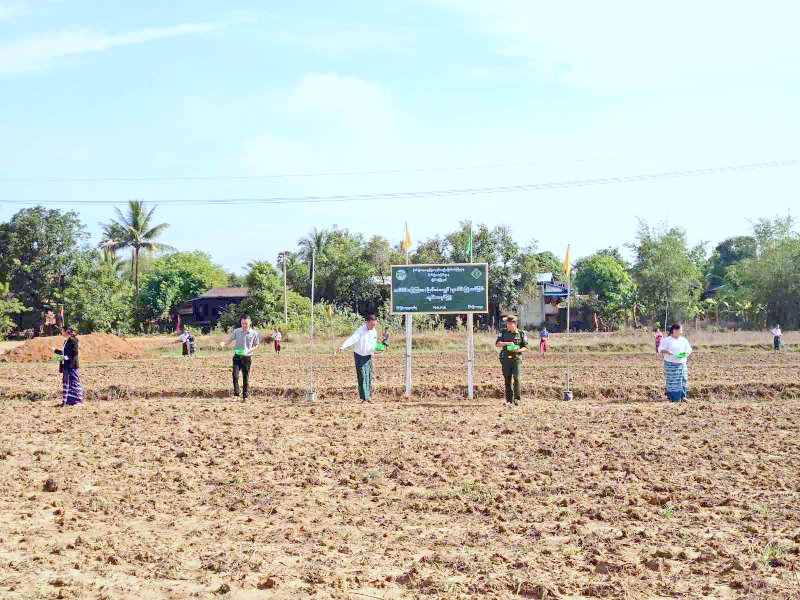 သစ်စိမ်းမြေသြဇာ (ပိုက်ဆံလျှော်) စုပေါင်းကြဲပက်ခြင်းကွင်းသရုပ်ပြပွဲသို့ မြို့နယ်စီမံအုပ်ချုပ်ရေးအဖွဲ့၊ အဖွဲ့ဝင်(၁) ဗိုလ်မှူး ဇော်ရှိန်းအောင်၊ အဖွဲ့ဝင်(၂) ဦးမြတ်စိမ်း၊ မြို့နယ်အဆင့်ဌာနဆိုင်ရာတာဝန်ခံများ၊ တောင်သူများ တက်ရောက်ကြပြီး စုပေါင်း၍ သစ်စိမ်းမြေသြဇာမျိုးစေ့များကို ကြဲပက်ခဲ့ကြသည်။