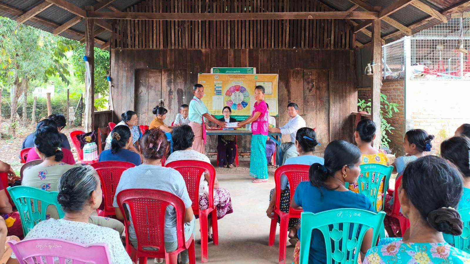 ဆက်လက်၍ စီမံကိန်းတာဝန်ခံနှင့် ဝန်ထမ်းများက အတိုးနှုန်းနှင့် ကာလသတ်မှတ်ချက်များ၊ ချေးငွေထုတ်ချေးရာတွင် လိုက်နာရမည့် စည်းကမ်းသတ်မှတ်ချက်များကို ရှင်းလင်းဆွေးနွေးပြီး မြစိမ်းရောင်ကျေးရွာ စီမံကိန်းလုပ်ငန်းအဖွဲ့ဝင်များထံ စီမံကိန်းအရင်းမပျောက် လည်ပတ်ရန်ပုံငွေ ကျပ် ၄၇၄ သိန်းကို လွှဲပြောင်းပေးအပ်ခဲ့သည်။