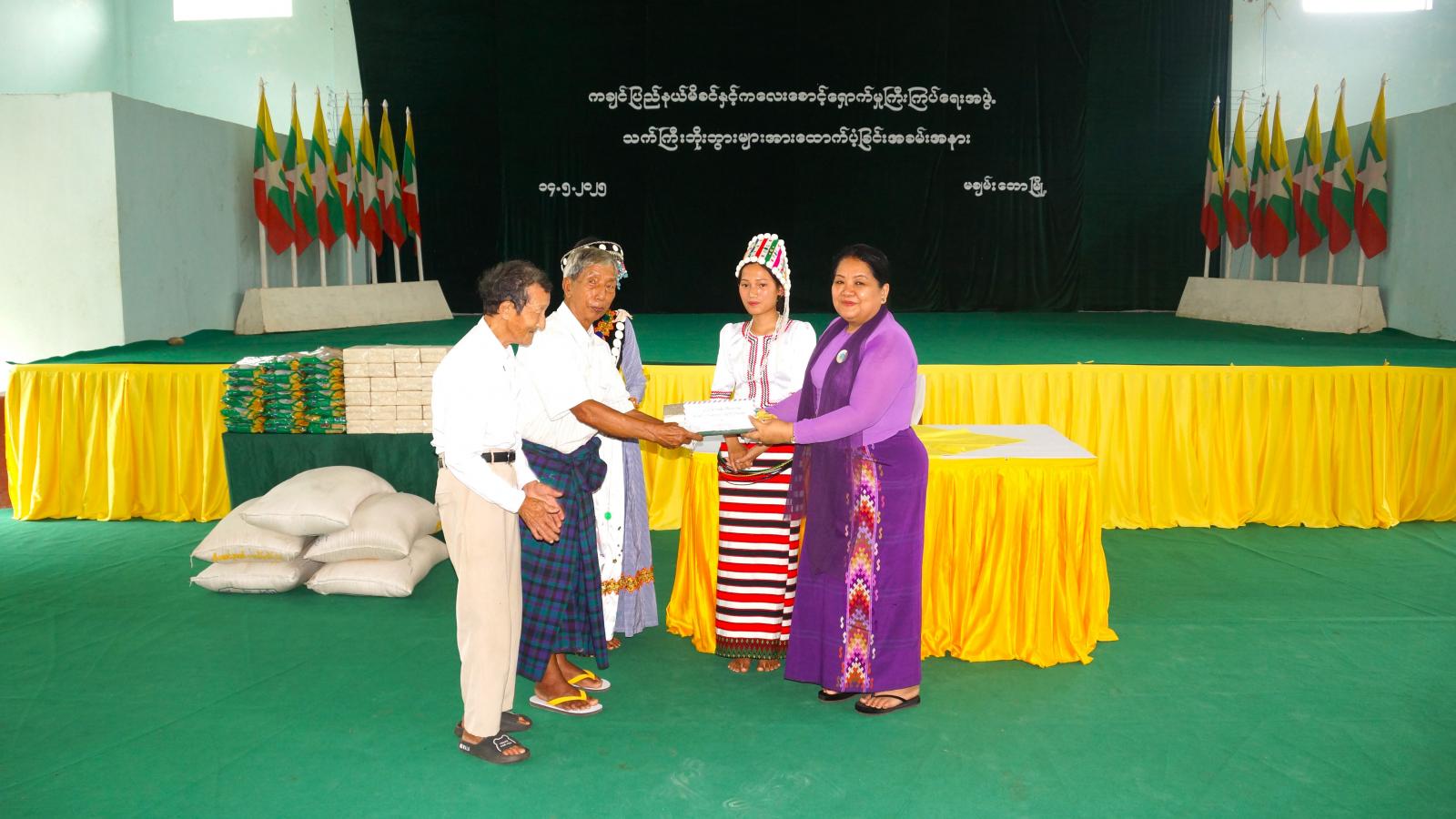 ကချင်ပြည်နယ် မိခင်နှင့်ကလေးစောင့်ရှောက်မှုကြီးကြပ်ရေးအဖွဲ့နှင့် အလှူရှင်များ၏လှူဒါန်းမှုဖြင့် မချမ်းဘောမြို့ မြို့ပေါ်ရပ်ကွက်များရှိ အသက်(၈၀)နှစ်အထက် သက်ကြီးအဘိုးအဘွားများအား ထောက်ပံ့ငွေနှင့်အာဟာရဖြည့်အစားအစာများ ပေးအပ်ပွဲ အခမ်းအနားကို ယမန်နေ့မွန်းလွဲ(၁)နာရီက မချမ်းဘောမြို့ နယ်စည်ပင်သာယာရေးအဖွဲ့ပိုင် ဂူဘားခန်းမ၌ ကျင်းပခဲ့ကြောင်း သိရသည်။