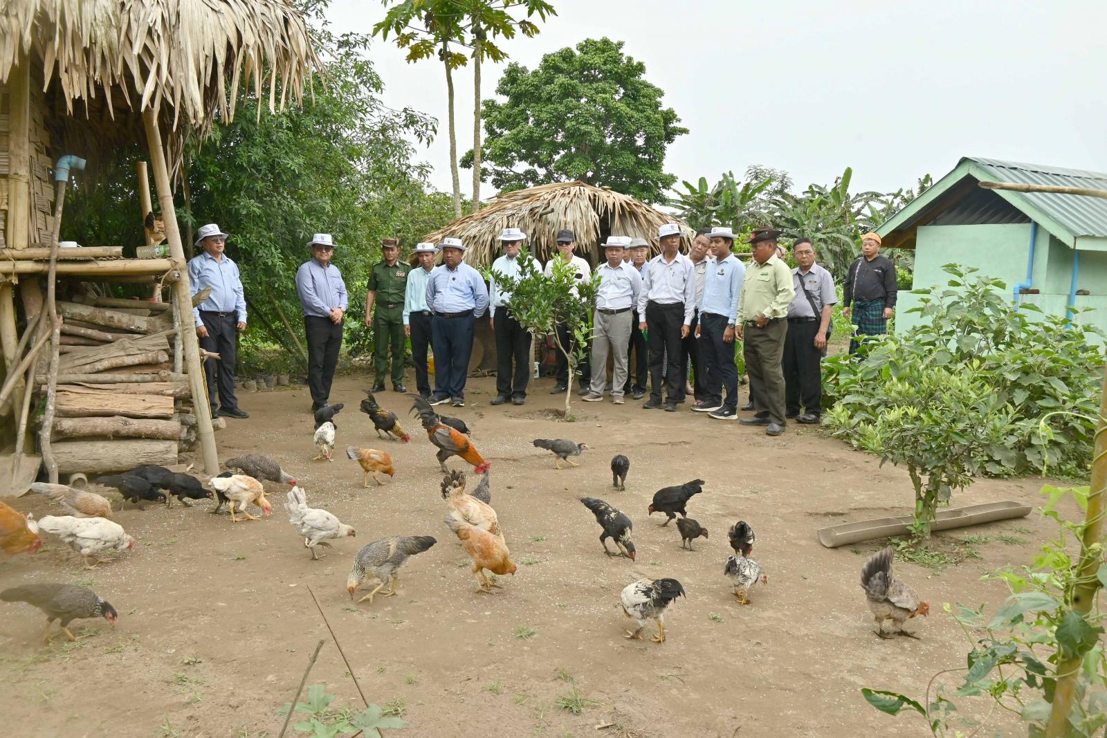 ယင်းနောက် အဆိုပါကျေးရွာအတွင်း နမ်ခမ်းချောင်းဘေး၌ နိုင်ငံ့စီးပွားမြှင့်တင်ရေး ရန်ပုံ ငွေများဖြင့် ကျေးရွာပိုင်အစုအဖွဲ့ဖြင့် မွေးမြူဆောင်ရွက်လျက်ရှိသည့် ငါးကန်များနှင့် ချောင်းရိုး တစ်လျှောက် တရားမဝင်ရွှေတူးဖော်မှုမရှိစေရေး တားမြစ်ချက် သတိပေးဆောင်ရွက်ထားရှိမှုနှင့် ဥပဒေအရ အရေးယူဆောင်ရွက်နိုင်ရေး တာဝန်ရှိသူများအား မှာကြားခဲ့သည်။