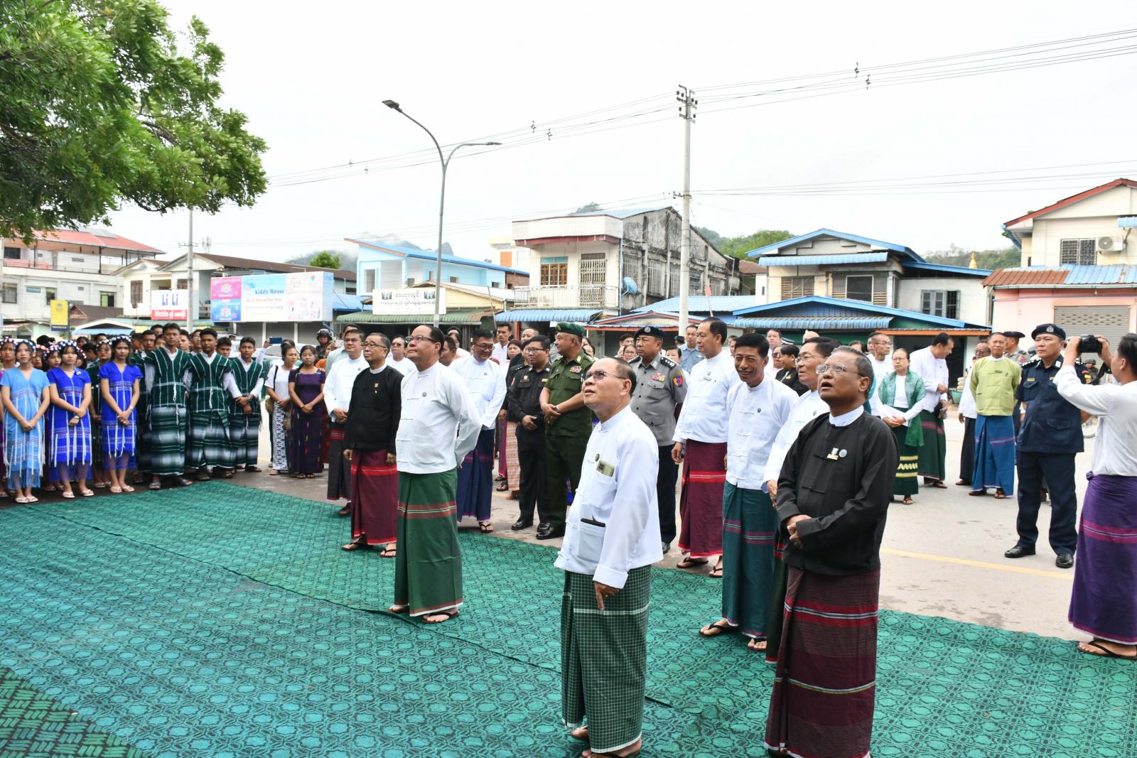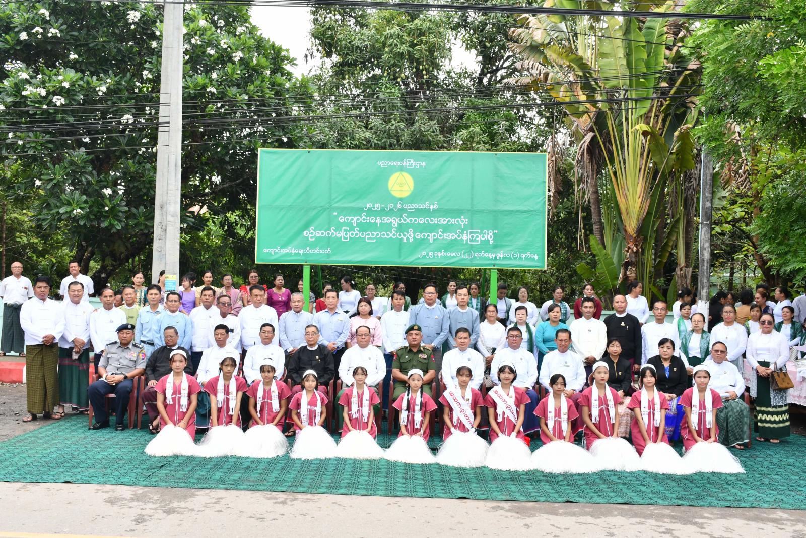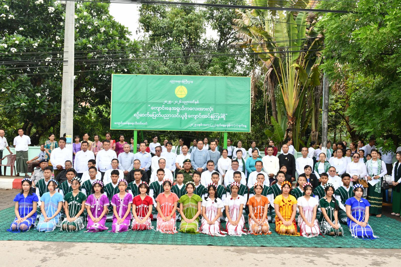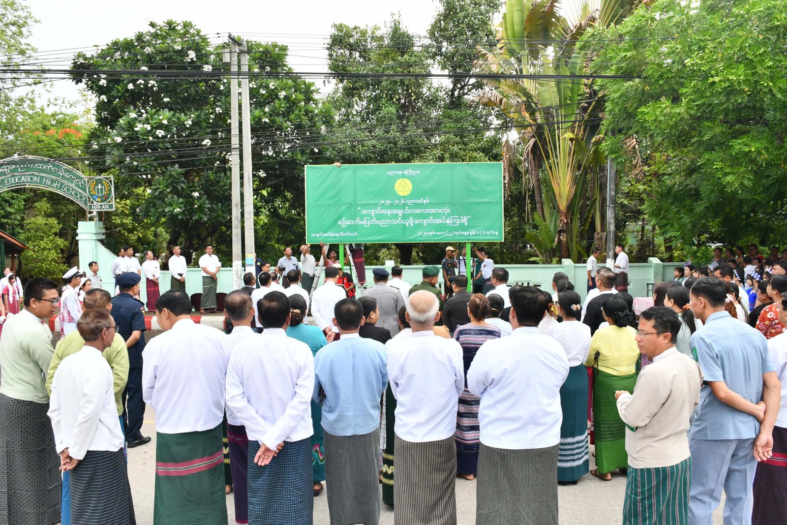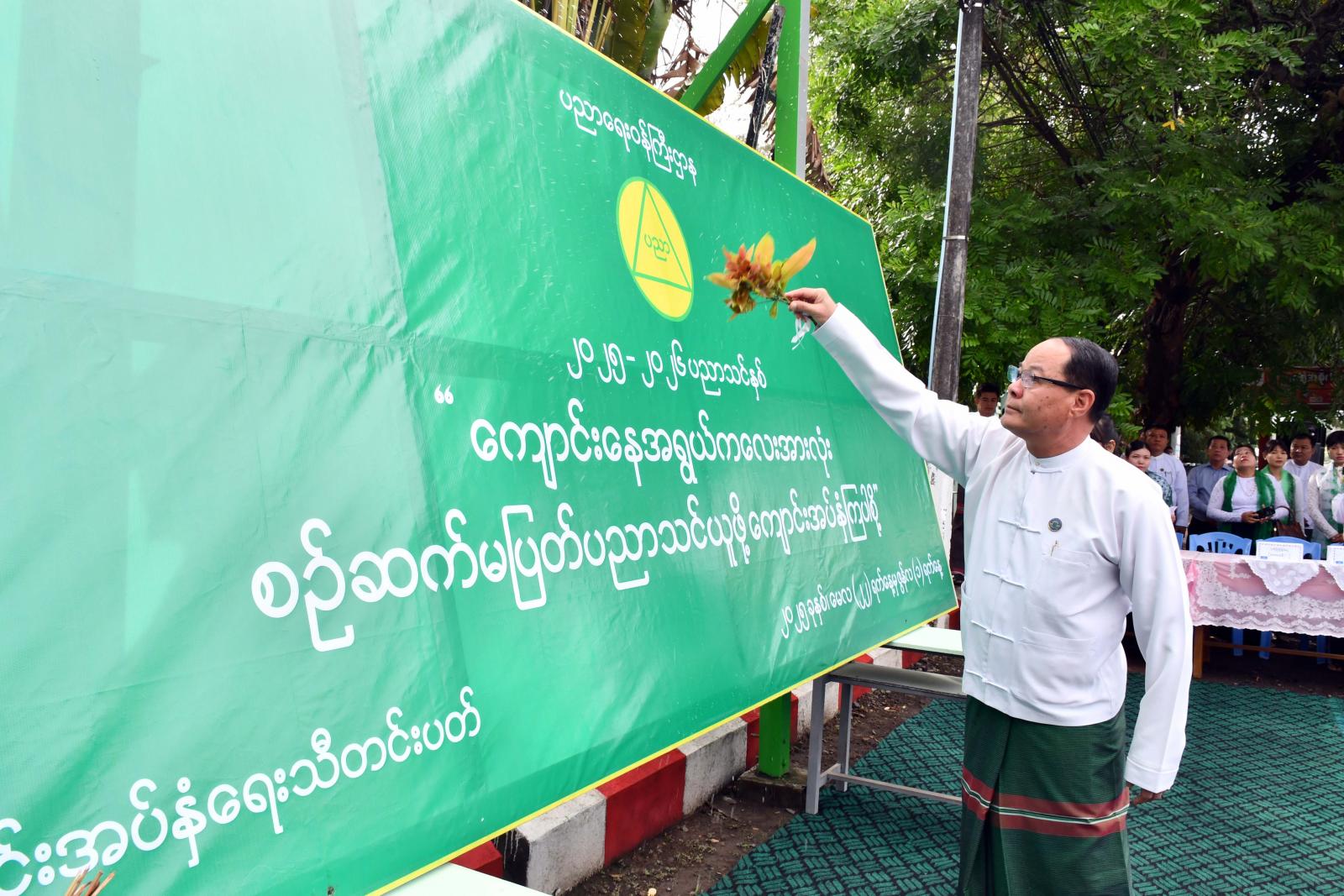 အဆိုပါ မြေစိုက်ပိုစတာစိုက်ထူပွဲသို့ ပြည်နယ်ဝန်ကြီးချုပ်ဦးစောမြင့်ဦး၊ ပြည်နယ်တရားလွှတ်တော်တရားသူကြီးချုပ ်ဦးညွန့်လင်း၊ ပြည်နယ်အစိုးရအဖွဲ့ဝင်များ၊ ပြည်နယ်ပညာရေးမှူးနှင့် အခြေခံပညာကျောင်းများမှ ကျောင်း သား၊ ကျောင်းသူ၊ ဆရာ၊ဆရာမများ၊ ကျောင်းသားမိဘများ တက်ရောက်ခဲ့ကြပြီး ပြည်နယ်ဝန်ကြီးချုပ်နှင့် တာဝန်ရှိသူများက မြေစိုက်ပိုစတာအား အမွှေးနံ့သာရည်များ ပက်ဖျန်းပေးကြကာ ကျောင်းအပ်နှံရေးနေ့ အထိမ်းအမှတ်မြေစိုက်ပိုစတာ ဆိုင်းဘုတ်အား စိုက်ထူပေးခဲ့ကြသည်။