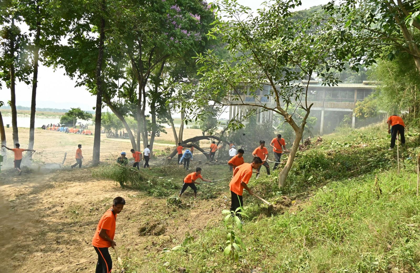 ထို့အပြင် ပြည်နယ်ဝန်ကြီးချုပ်သည် ပြည်နယ်ဝန်ကြီးများနှင့်အတူ ယမန်နေ့ နံနက်ပိုင်းကလည်း မြစ်ကြီးနားမြို့ လောကမာန်အောင် ဆုတောင်းပြည့်ဆိပ်ကမ်း၌ ကမ်းပါးတစ်လျှောက် ရေလျှံတားအုတ်ရိုးစီ နံရံတည်ဆောက်လျက်ရှိရာတွင် ဆုတောင်းပြည့်စေတီတော်မြေထိန်းနံရံ၌ စည်ပင်သာယာရေးအဖွဲ့၊ မီးသတ်တပ်ဖွဲ့ဝင်များနှင့် စုပေါင်း၍ သစ်ပင်ခြုံနွယ်များ ခုတ်ထွင်ရှင်းလင်းခြင်း၊ အမှိုက်များကောက်ယူခြင်းနှင့် သန့်ရှင်းရေးလုပ်ငန်းများ ဆောင်ရွက်နေမှုများကို ပူးပေါင်းဆောင်ရွက်ပေးခဲ့ကြပြီး မြစ်ကမ်းပါး၌ ကလေးငယ်များ ပျော်ပွဲစားထွက် လာရောက်မှုကို ရင်းရင်းနှီးနှီးနှုတ်ဆက်ခဲ့ကြကာ ကမ်းနားလမ်းတစ်လျှောက် ကြည့်ရှုစစ်ဆေးခဲ့ကြသည်။