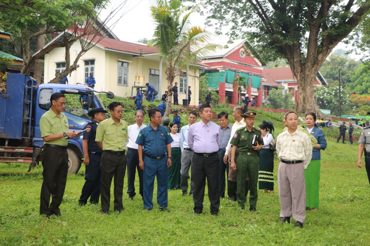 ထို့နောက် ပြည်နယ်ဝန်ကြီးချုပ်က စာသင်ကျောင်းဝင်းအတွင်း၊ အပြင်သန့်ရှင်းရေး ဆောင်ရွက်နေမှုအခြေအနေတို့အား လှည့်လည်ကြည့်ရှုစစ်ဆေးပြီး အခြေခံပညာစာသင်ကျောင်းများ သန်ရှင်း၍ စိမ်းလန်းစိုပြည်စေရေး အလေးထားဆောင်ရွက်ပေးကြရန်၊ မကြာမီကျောင်းများပြန်လည်ဖွင့်လှစ်တော့မည် ဖြစ်သည့်အတွက် ကျောင်းအင်္ဂါရပ်နှင့် ကိုက်ညီမှုရှိစေရေး၊ ဥပတိရုပ်ကောင်းမွန်စေရေးနှင့် ကျောင်းပတ်ဝန်းကျင် စိမ်းလန်းစိုပြည်၍ သန့်ရှင်းသာယာမှုရှိစေရေးအတွက် တာဝန်ရှိသူများနှင့်တွေ့ဆုံ၍ လိုအပ်သည်များကို ဖြည့်ဆည်းဆောင်ရွက်ပေးခဲ့သည်။