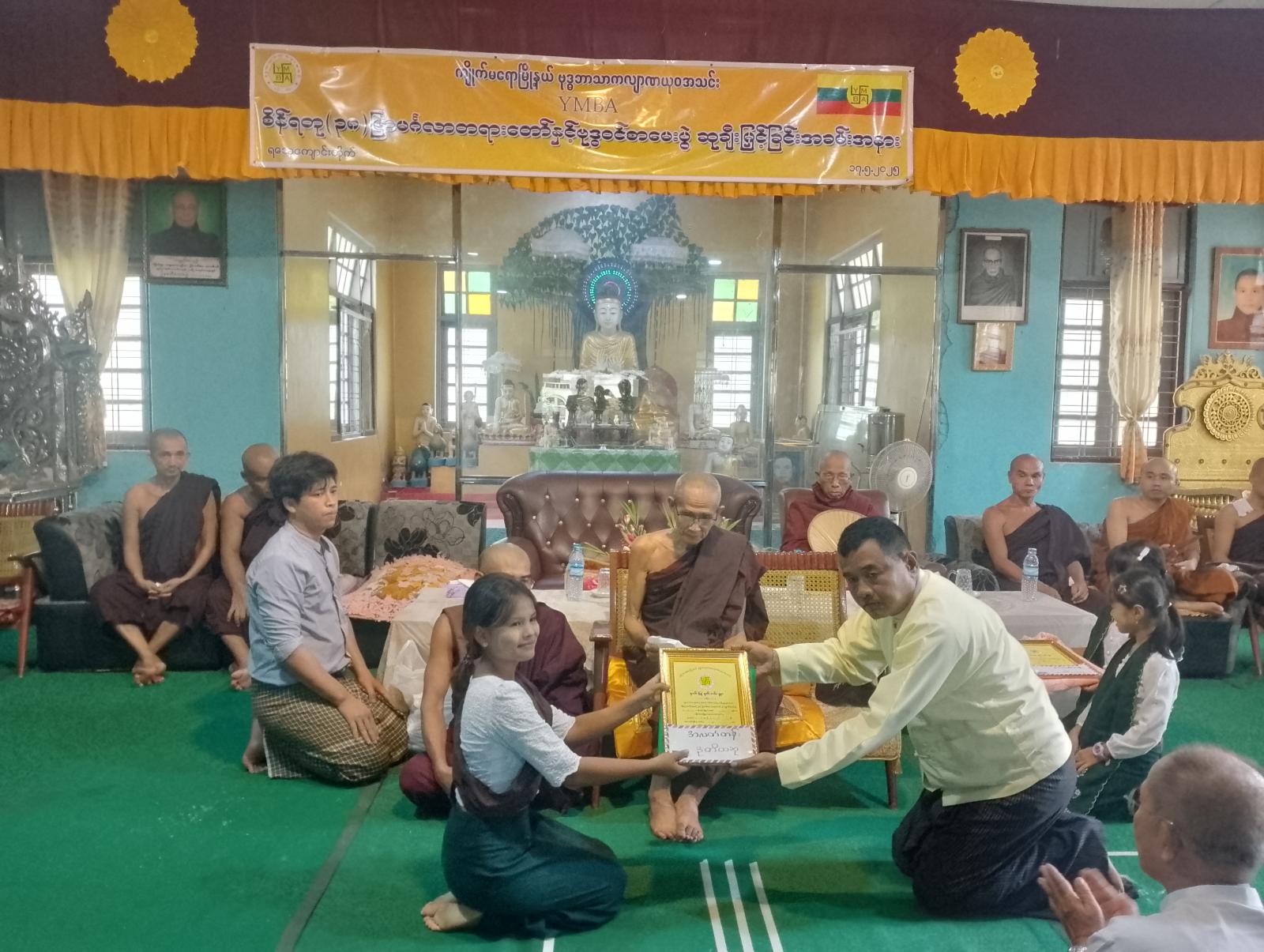 မွန်ပြည်နယ် ကျိုက်မရောမြို့နယ်တွင် ဗုဒ္ဓဘာသာကလျာဏယုဝအသင်း (YMBA) ဗဟိုမှ ကြီးမှူးကျင်းပခဲ့သည့် (၇၅) ကြိမ်မြောက် စိန်ရတုအထိမ်းအမှတ်၊ ၃၈ ဖြာမင်္ဂလာ တရားတော်နှင့်ဗုဒ္ဓဝင်စာမေးပွဲတွင် ထူးချွန်စွာ အောင် မြင်ခဲ့ကြသော ကျိုက်မရောမြို့နယ်မှ ကျောင်းသား၊ ကျောင်းသူများအား ဆုချီးမြှင့်ခြင်းအခမ်းအနားကို မေ ၁၇ ရက်နေ့ မွန်းလွဲ၁နာရီက ရသေ့ကျောင်းတိုက်ဓမ္မာရုံ၌ ကျင်းပခဲ့သည်။