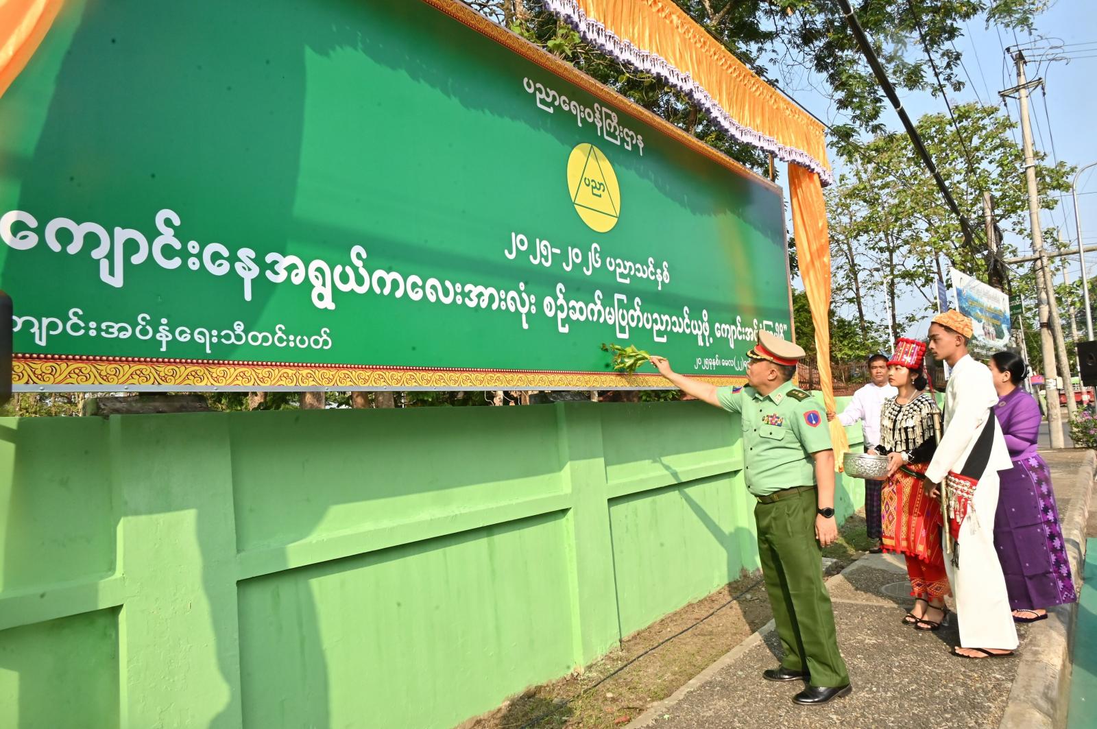 ထို့နောက် ကျောင်းအပ်နှံရေးနေ့ သီတင်းပတ်အဖြစ် မြေစိုက်ပိုစတာဆိုင်းဘုတ်ကို ပြည်နယ် လုံခြုံရေးနှင့်နယ်စပ်ရေးရာဝန်ကြီး ဗိုလ်မှူးကြီးကျော်သူရက စက်ခလုတ်နှိပ် ဖွင့်လှစ်ပေးခဲ့ပြီး ပြည်နယ်တရားလွှတ်တော်တရားသူကြီးချုပ်၊ ပြည်နယ်ဝန်ကြီးချုပ်၏ဇနီး၊ ပြည်နယ်အစိုးရအဖွဲ့ဝင် ဝန်ကြီးများ၊ ပြည်နယ်အစိုးရအဖွဲ့ အတွင်းရေးမှူးနှင့် ပြည်နယ်ပညာရေးမှူးတို့က အမွှေးနံ့သာရည် များ ပတ်ဖျန်းပေးခဲ့ကြသည်။