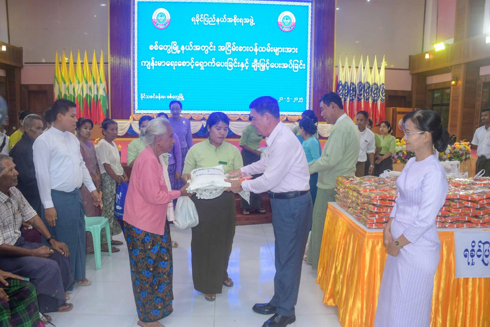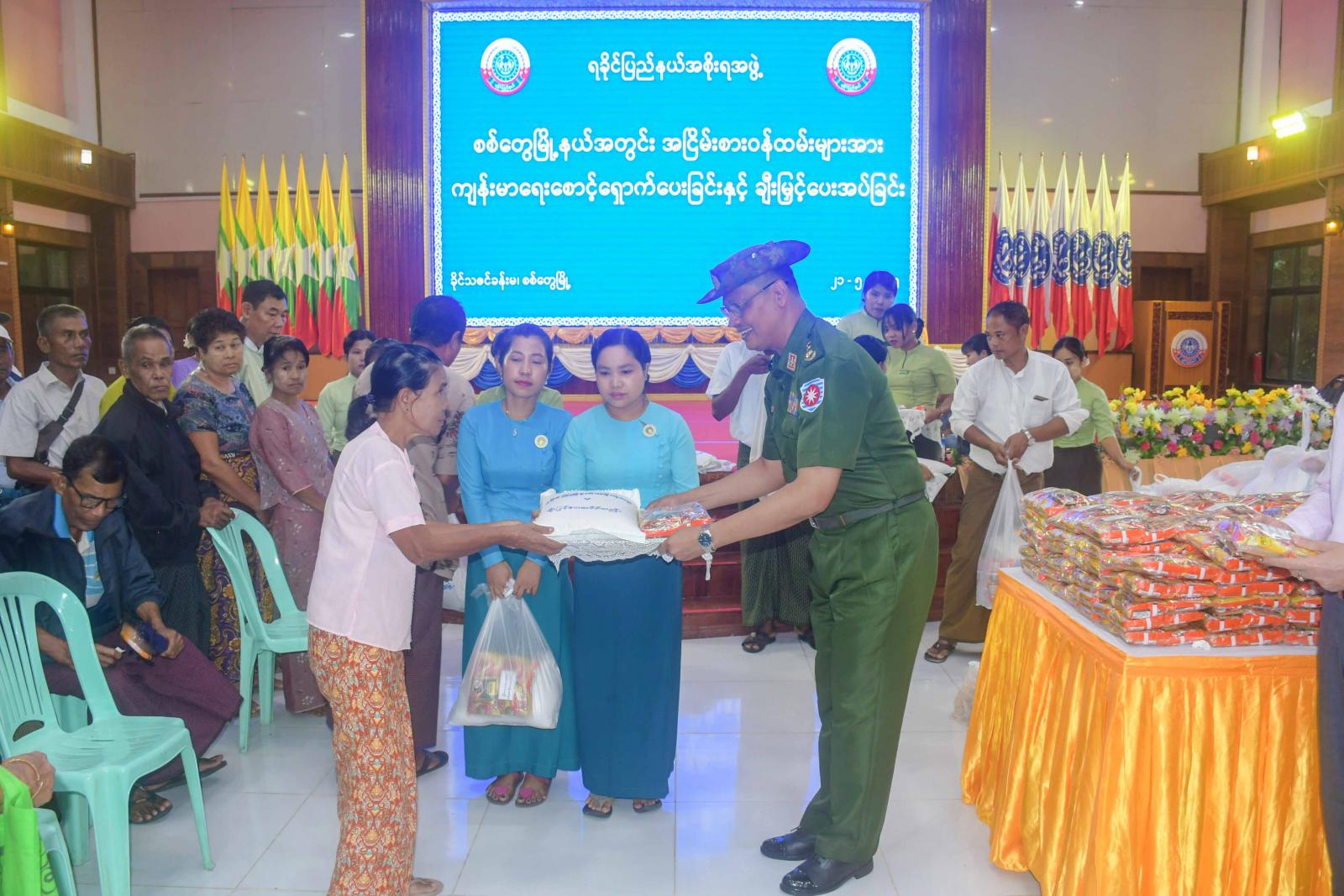 ဦးစွာ ရခိုင်ပြည်နယ်ဝန်ကြီးချုပ်နှင့်အဖွဲ့သည် ပင်စင်လစာထုတ်ယူရန်လာရောက်ကြသည့် အငြိမ်းစားဝန်ထမ်းများအား ရင်းရင်းနှီးနှီး လိုက်လံနှုတ်ဆက်ကြပြီး အငြိမ်းစားဝန်ထမ်းများအား မြန်မာ့စီးပွားရေးဘဏ်ဝန်ထမ်းများက ပင်စင်လစာထုတ်ပေးနိုင်ရန်အတွက် လိုအပ်သောစိစစ်မှုများဆောင်ရွက် နေမှုကို လှည့်လည်ကြည့်ရှုအားပေးကြသည်။ ဆက်လက်၍ ပြည်နယ်ဝန်ကြီးချုပ်နှင့်အဖွဲ့သည် အငြိမ်းစား ဝန်ထမ်းများအား ပင်စင်လစာထုတ်ပေးနေမှု၊ တိုင်းရင်းဆေးပညာဦးစီးဌာနမှ ဝန်ထမ်းများကကျန်းမာရေး စောင့်ရှောက်မှုပေးခြင်းများ ဆောင်ရွက်နေမှုနှင့် စစ်တွေမြို့၊ ခုတင်(၅၀၀)ဆံ့ အထွေထွေရောဂါကု ဆေးရုံကြီးမှ အထူးကုဆရာဝန်ကြီးများ၊ ဆရာဝန်၊ သူနာပြုများက ကျန်းမာရေးစောင့်ရှောက်ပေးနေမှုတို့ကို လှည့်လည်ကြည့်ရှုအားပေးကြပြီး လိုအပ်သည်များကို တာဝန်ရှိသူများနှင့် ပေါင်းစပ် ညှိနှိုင်းပေးကြသည်။ ထို့နောက် ပြည်နယ်ဝန်ကြီးချုပ်၊ ပြည်နယ်တရားလွှတ်တော်တရားသူကြီးချုပ်၊ ပြည်နယ်အစိုးရအဖွဲ့ဝင်များနှင့် တာဝန်ရှိသူများက အငြိမ်းစားဝန်ထမ်းများအား ရခိုင်ပြည်နယ်အစိုးရ အဖွဲ့မှပေးအပ်ချီးမြှင့်သည့်ဆန်နှင့် စားသောက်ဖွယ်ရာများအား ပေးအပ်ချီးမြှင့်ကြသည်။ အလားတူ ပြည်နယ်အမျိုးသမီးရေးရာအဖွဲ့နာယကနှင့် အမျိုးသမီးရေးရာအဖွဲ့ဝင်များ၊ မိခင်နှင့်ကလေးစောင့်ရှောက်မှု ကြီးကြပ်ရေးအဖွဲ့ဝင်များကလည်း တိုင်းရင်းဆေးဝါးများကို ပေးအပ်လှူဒါန်းကြသည်။