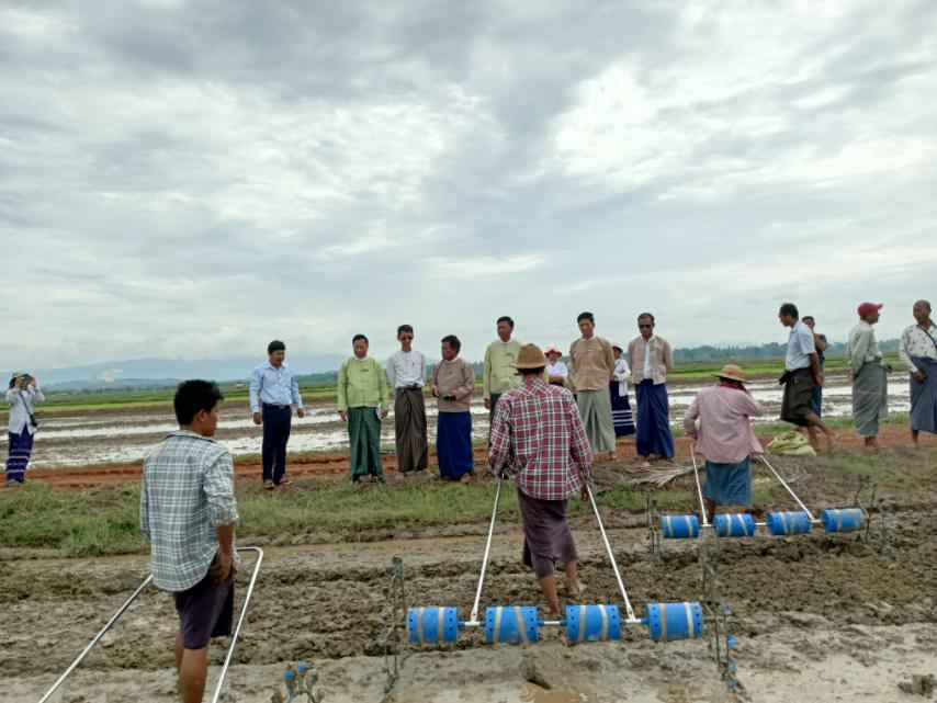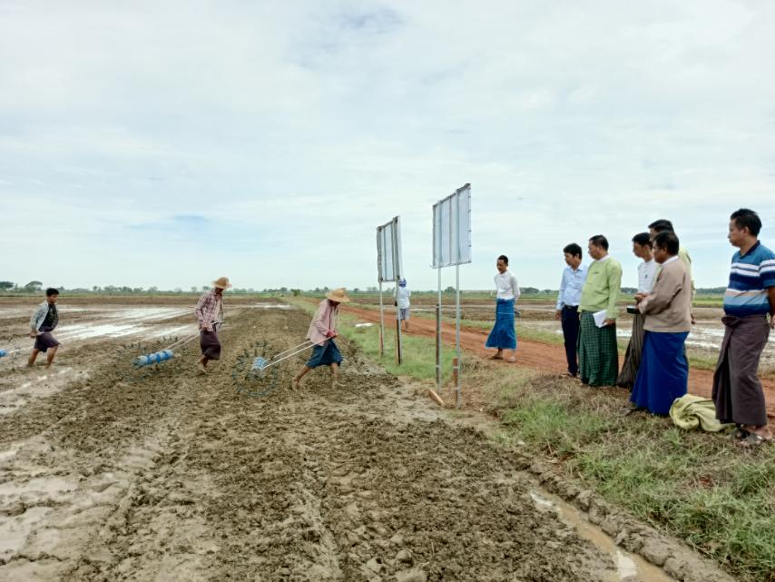 စပါးမျိုးစေ့ချကိရိယာ(Seeder)ဖြင့် လက်တွေ့အစေ့ချ စိုက်ပျိုးပြသခြင်းကို ကျိုက်ပိကျေးရွာအုပ်စု၊ OSS သောင်ကွင်း၌ပြုလုပ်ရာ ခရိုင်စီမံအုပ်ချုပ်ရေးအဖွဲ့ဥက္ကဋ္ဌ ဦးကံစောလှိုင်နှင့်အဖွဲ့ဝင်များ၊ မြို့နယ်စီမံအုပ်ချုပ်ရေးအဖွဲ့ဥက္ကဋ္ဌ ဦးတင့်လွင်နှင့်အဖွဲ့ဝင်များ၊ မြို့နယ်စက်မှုလယ်ယာဦးစီးဌာနမှူး ဦးထွန်းထွန်းဝင်း၊ မြို့နယ်စိုက်ပျိုးရေးဦးစီးဌာနမှူး ဦးဝင်းဗိုလ်၊ မြို့နယ်ကြေးတိုင်နှင့်မြေစာရင်းဦးစီးဌာနမှူး ဦးမျိုးမင်းဦးနှင့် တာဝန်ရှိသူများနှင့် ကျေးရွာတောင်သူများက ကြည့်ရှုအားပေးကာ ရှစ်တန်းသွားမျိုးစေ့ချကိရိယာဖြင့် မျိုးစေ့ချစိုက်ပျိုးရာ၌ ရရှိမည့်အကျိုးကျေးဇူးများ၊ လိုအပ်သည့်နည်းပညာပံ့ပိုးပေးနိုင်မှုများကို ရှင်းလင်းပြောကြားပြီး လိုအပ်သည်တို့ကို ပေါင်းစပ်ညှိနှိုင်း ဆောင်ရွက်ပေးခဲ့ကြသည်။