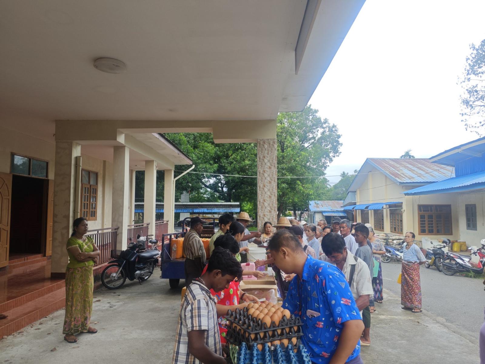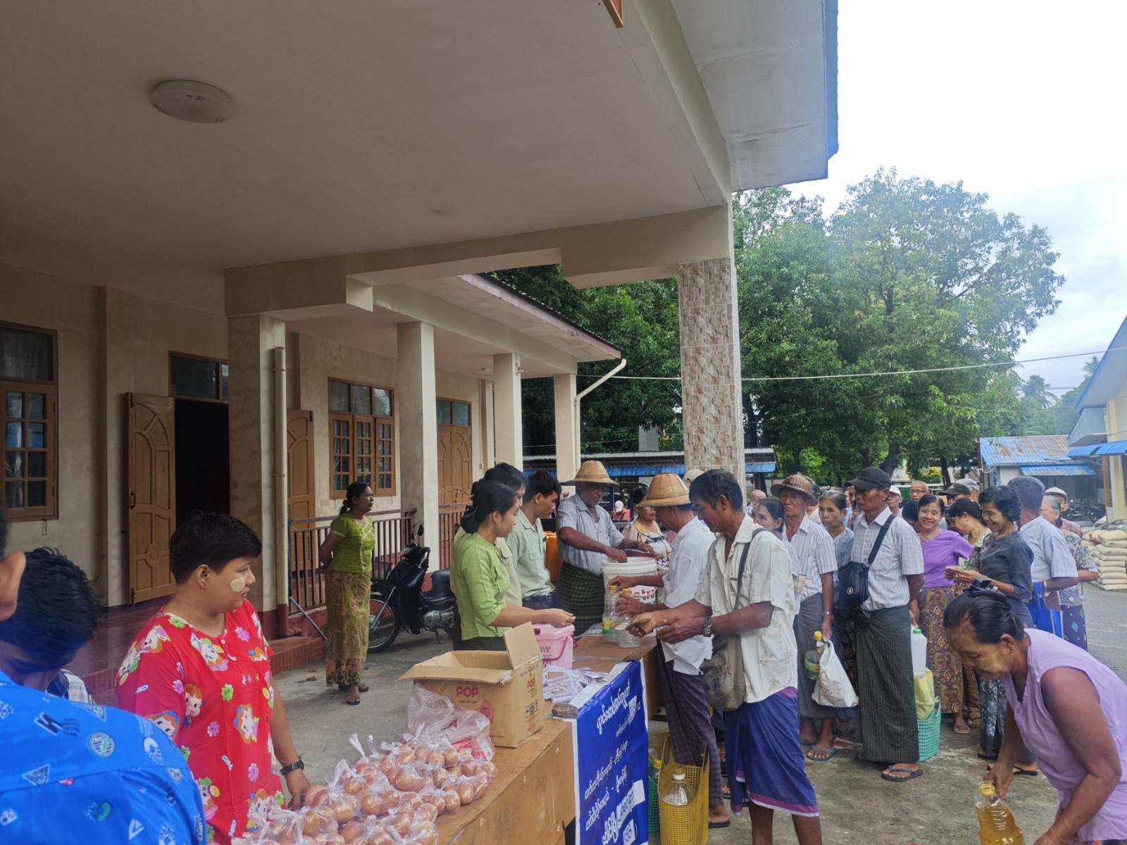 ထိုသို့ဆောင်ရွက်ရာတွင် မြို့နယ်စီမံအုပ်ချုပ်ရေးအဖွဲ့ဝင်များ၊ တာဝန်ရှိသူများ၊ ကျန်းမာရေးဝန်ထမ်းများမှ ကျန်းမာရေးစစ်ဆေးကုသခြင်းနှင့် လိုအပ်သည့်ဆေးဝါးများ အခမဲ့ပေးအပ်ခြင်း၊ မြို့နယ်စည်ပင်သာယာရေးအဖွဲ့နှင့် တာဝန်ရှိသူများတို့ပူးပေါင်းကာ သက်သာသောဈေးနှုန်းဖြင့် ပဲ၊အာလူး၊ဆီ စသည့်အခြေခံစားသောက်ကုန်များကို ရောင်းချပေးခြင်း လိုအပ်သည်များကိုပံ့ပိုးပေးခဲ့ကြသည်။