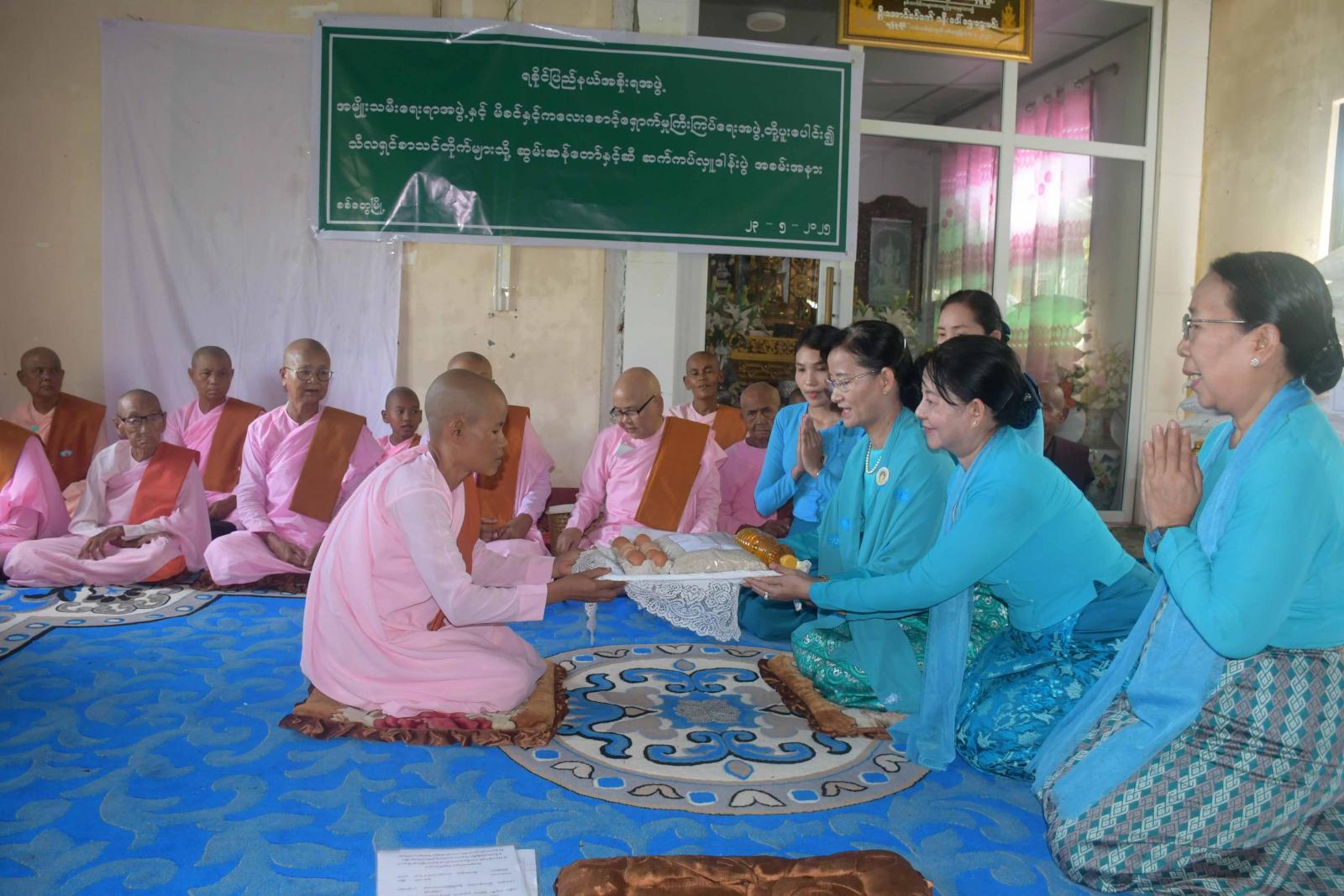 ဆက်လက်ပြီး ရခိုင်ပြည်နယ်အမျိုးသမီးရေးရအဖွဲ့ နာယက ဒေါ်ဆွေဆွေမြတ်နှင့် ရခိုင်ပြည်နယ်အမျိုးသမီးရေးရအဖွဲ့ဥက္ကဋ္ဌ ဒေါ်ယဉ်ယဉ်သိန်း၊ ပြည်နယ်၊ ခရိုင်၊ မြို့နယ် အမျိုးသမီးရေးရာအဖွဲ့နှင့် မိခင်နှင့်ကလေးစောင့်ရှောက်မှုကြီးကြပ်ရေးအဖွဲ့ဝင်များက စစ်တွေမြို့အတွင်းရှိ သီလရှင်စာသင်တိုက် (၈) ကျောင်းအား ဆွမ်းဆန်တော်၊ ဆီနှင့် စားသောက်ဖွယ်ရာများ လှူဒါန်းကြသည်။