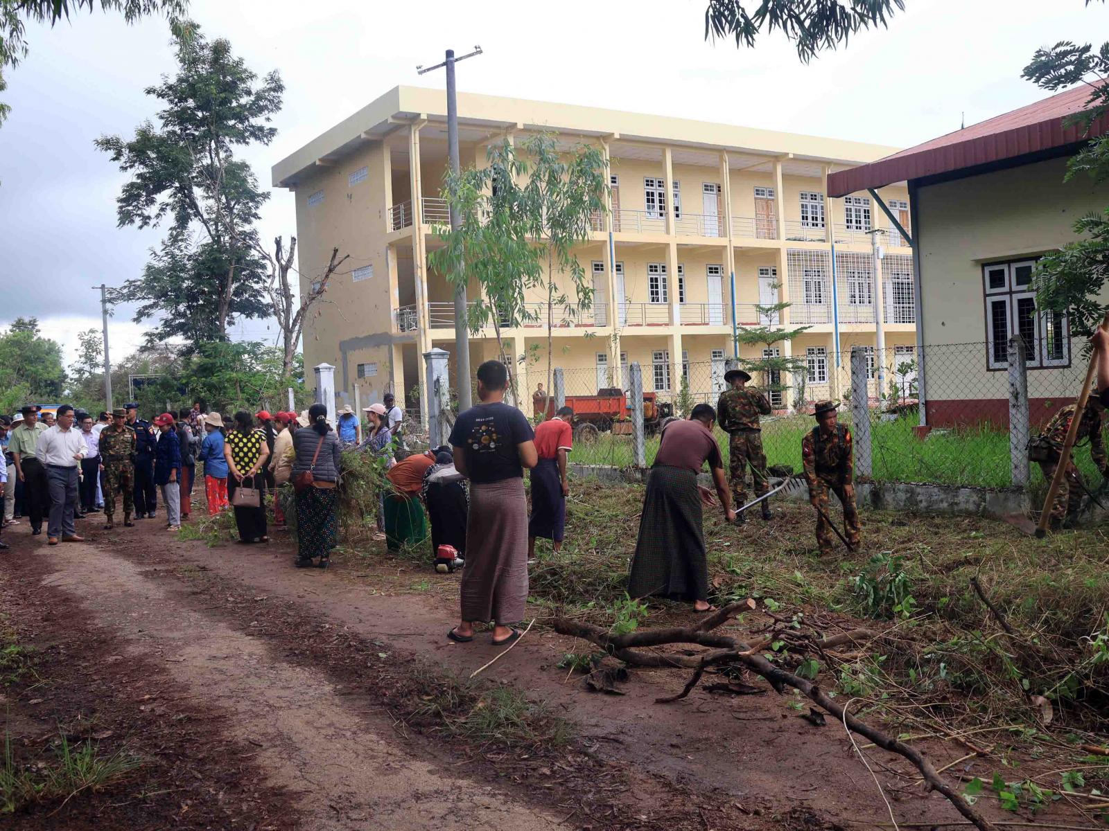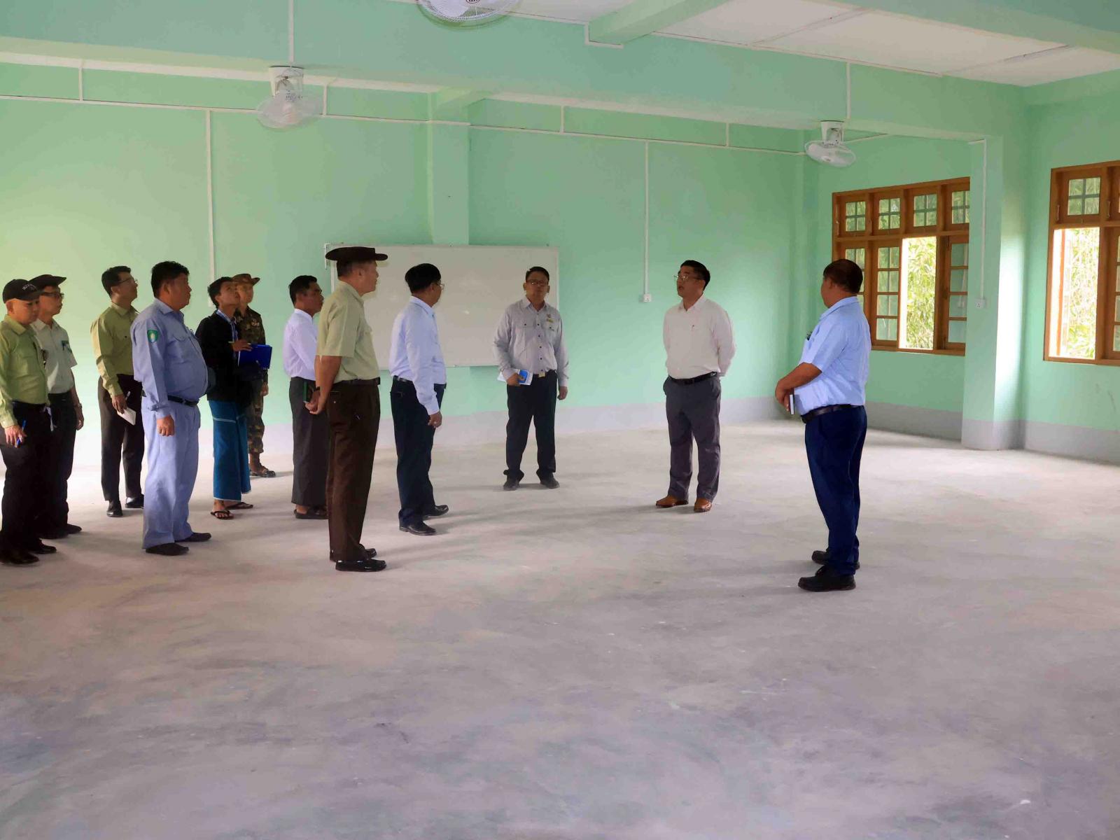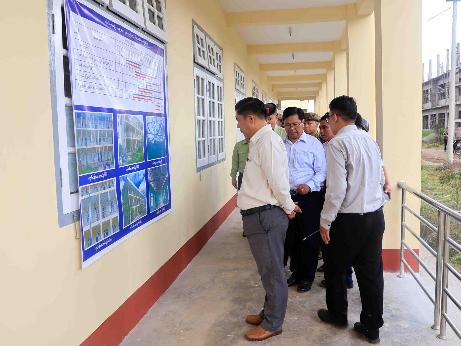 ရှေးဦးစွာ ပြည်နယ်ဝန်ကြီးချုပ်နှင့် တာဝန်ရှိသူများသည် အစိုးရစက်မှုလက်မှုသိပ္ပံကျောင်း ပရိဝုဏ်အတွင်း နယ်မြေခံတပ်ရင်းတပ်ဖွဲ့များ၊ ပြည်နယ်ရဲတပ်ဖွဲ့ဝင်များနှင့် ဌာနဆိုင်ရာဝန်ထမ်းများစုပေါင်း၍ သန့်ရှင်းရေးဆောင်ရွက်ပေးနေမှုကို လှည့်လည်ကြည့်ရှုအားပေးသည်။ ထို့နောက် ကျောင်းဝင်းအတွင်း စာသင်ဆောင်များ၊ ကျောင်းသား/ကျောင်းသူများနှင့် ဝန်ထမ်းအိပ်ဆောင်များ၊ စားရိပ်သာများ ပြင်ဆင်ဆောင်ရွက်ပြီးစီးနေမှုကို ကြည့်ရှုစစ်ဆေးပြီး ကျောင်းဖွင့်ချိန်အမီစာသင်ဆောင်များ၊ ကျောင်းသူ/ကျောင်းသူများနှင့် ဝန်ထမ်းများအိပ်ဆောင်များ၊ စားရိပ်သာများ၊ လက်တွေ့အလုပ်ရုံ များ အသင့်ဖြစ်စေရေး ကျောင်းသုံးရုံးသုံးပရိဘောဂများနှင့် သင်ထောက်ကူပစ္စည်းများ ပြည့်စုံစွာထားရှိရေးနှင့် သောက်သုံးရေ၊ လျှပ်စစ်မီးများအဆင်ပြေစေရေး ဆောင်ရွက်သွားရန် တာဝန်ရှိသူများအားမှာကြားပြီး လိုအပ်သည်များ ပေါင်းစပ်ညှိနှိုင်းပေးခဲ့သည်။