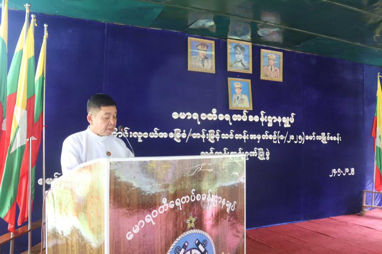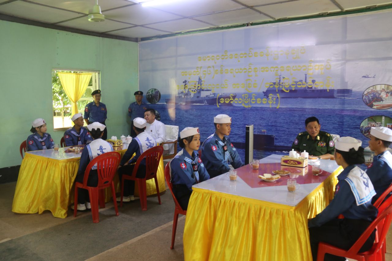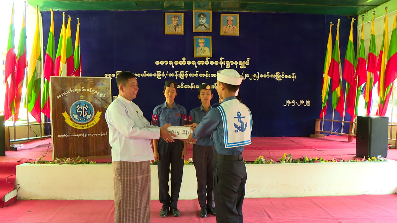 ရေကြောင်းလူငယ်အခြေခံနှင့်တန်းမြင့်သင်တန်းအမှတ်စဉ် (၁/၂၀၂၅) သင်တန်းသား၊ သင်တန်းသူများ၊ နည်းပြနှင့် ကြီးကြပ်များအား ဂုဏ်ပြုကြိုဆိုပွဲအခမ်းအနားကို ယမန်နေ့မွန်းလွဲပိုင်းက မော်လမြိုင်မြို့ မောရဝတီရေတပ်စခန်းဌာနချုပ်၊ အမှတ်(၄၆)စစ်ရေယာဉ်စု အကူရေယာဉ်အုပ်(မော်လမြိုင်သင်တန်းစခန်း)၌ ကျင်းပပြုလုပ်ရာ မွန်ပြည်နယ်ဝန်ကြီးချုပ်ဦးအောင်ကြည်သိန်း၊ အရှေ့တောင်တိုင်းစစ်ဌာနချုပ် တိုင်းမှူး ဗိုလ်ချုပ်ကျော်လင်းမောင် ပြည်နယ်အစိုးရအဖွဲ့ဝင်၀န်ကြီးများ၊ တပ်မတော်အရာရှိကြီးများ၊ တာဝန်ရှိသူများ၊ သင်တန်းသား၊ သင်တန်းသူများ တက်ရောက်ခဲ့ကြသည်။