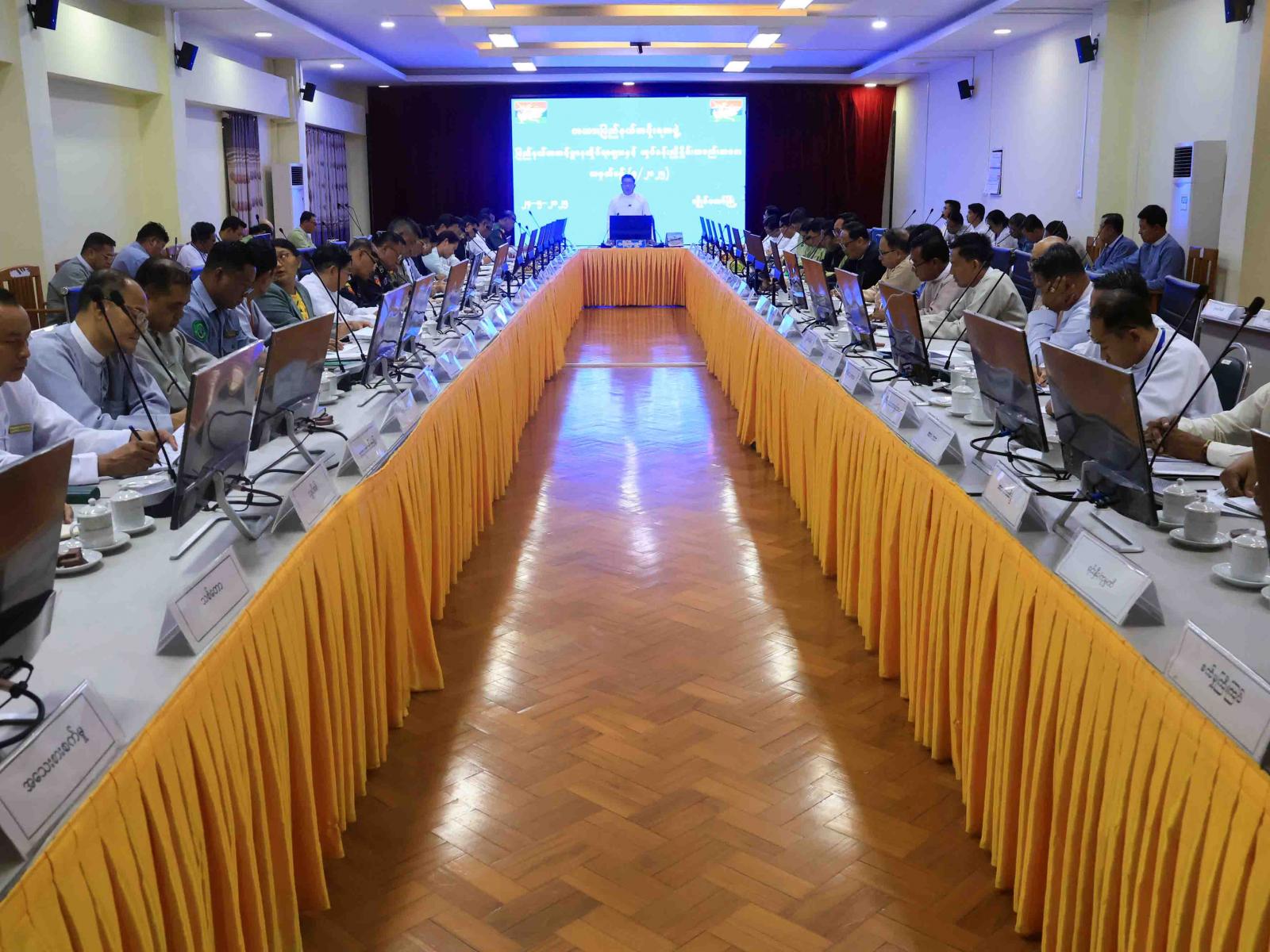 ပြည်နယ်ဝန်ကြီးချုပ်က အဖွင့်အမှာစကားပြောကြားရာတွင် ၂၀၂၅-၂၀၂၆ ဘဏ္ဍာနှစ်အတွင်း ဌာနအလိုက် စီမံကိန်းလျာထားချက်များအားပြည့်မီအောင်ဆောင်ရွက်ရေး၊ ပြည်နယ်အတွင်း စီးပွားရေးပြန်လည်ဖွံ့ဖြိုးတိုးတက်လာစေရန် စိုက်ပျိုးရေး၊ မွေးမြူရေး၊ MSME လုပ်ငန်းများကို အောင်မြင်အောင် ကြိုးပမ်းဆောင်ရွက်ရေး၊ အခွန်အကောက်များ ပြည့်မီစွာရရှိရေး၊ ပညာရေး၊ ကျန်းမာရေး၊ လူမှုရေးနှင့် အားကစားကဏ္ဍအသီးသီးတွင် အချိုးညီညီတိုးတက်ရေး၊ မကြာမီ အဆင့်မြင့်နှင့်အခြေခံပညာကျောင်းများ၊ သက်မွေးပညာကျောင်းများ ဖွင့်လှစ်ရာတွင် လိုအပ်သည့် သင်ထောက်ကူပစ္စည်းများပြည့်စုံရေးနှင့် သက်ဆိုင်ရာကျောင်းအလိုက် တက်ရောက်မည့် ကျောင်းသား/ကျောင်းသူများ တက်ရောက်နိုင်ရေး ဆောင်ရွက်သွားရန်၊ တည်ဆောက်ရေးလုပ်ငန်းများကို သတ်မှတ်စံချိန်စံညွှန်းများနှင့်အညီ သတ်မှတ်ကာလအတွင်း ပြီးစီးအောင် ကြီးကြပ်ဆောင်ရွက်ရေးနှင့် မြို့/ရွာများ သန့်ရှင်းသာယာလှပပြီး မြို့အင်္ဂါရပ်နှင့်အညီဖြစ်စေရေးနှင့် ပြည်သူများပူးပေါင်းပါဝင်ကြရေးကို စည်းရုံးဆောင်ရွက်ကြရန် ပြောကြားခဲ့သည်။