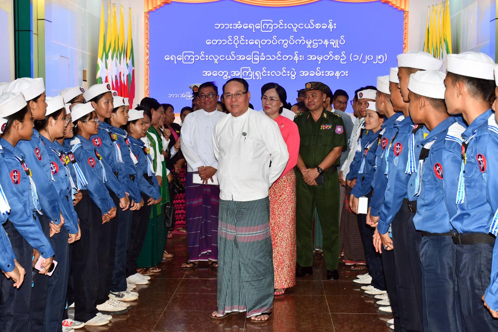 ဦးစွာ ကရင်ပြည်နယ်ဝန်ကြီးချုပ်ဦးစောမြင့်ဦးက သင်တန်းမှလေ့လာဆည်းပူးခဲ့ကြသည့် ရေကြောင်းဆိုင်ရာ အခြေခံပညာရပ်များကို ဆက်လက်လေ့လာဆည်းပူးသင်ယူ၍ စာတွေ့လက်တွေ့ ပေါင်းစပ် ပြီး စိတ်ဓာတ်စည်းကမ်းကောင်းမွန်၍ ကျန်းမာကြံ့ခိုင်သည့်ထူးချွန်ထက်မြက်သော လူငယ်၊ လူရွယ်များဖြစ်အောင်၊ အသိပညာရှင်၊ အတတ်ပညာရှင်များ၊ ထက်မြက်သည့်လူ့စွမ်းအား အရင်းအမြစ်များဖြစ်အောင် ဆက်လက်ကြိုးစားကြစေလိုကြောင်း အဖွင့် အမှာစကားပြောကြားရာတွင် ထည့်သွင်းပြောကြားခဲ့သည်။