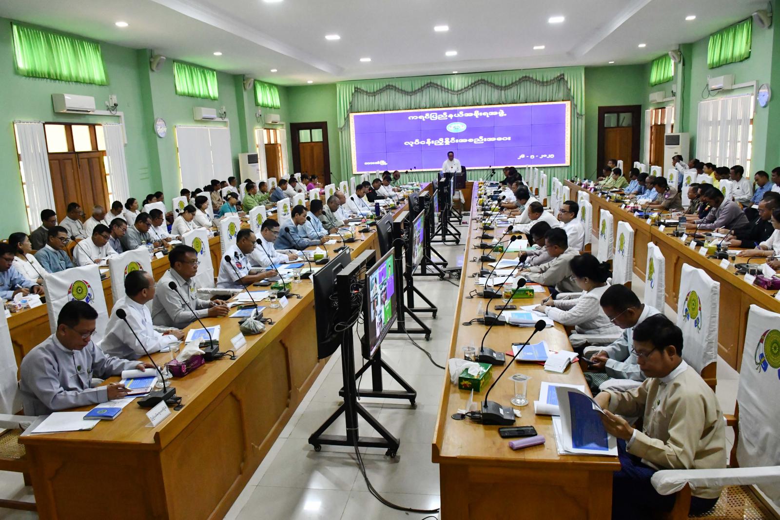 နိုင်ငံတော်အကြီးအကဲ၏ လမ်းညွှန်ချက်များနှင့် ကရင်ပြည်နယ်အတွင်း လုံခြုံရေး၊ တရားဥပဒေစိုးမိုးရေး၊ ဒေသဖွံ့ဖြိုးတိုးတက်ရေးနှင့် ပြည်သူ့အကျိုးပြုလုပ်ငန်းများဆောင်ရွက်ရာတွင် ဌာနဆိုင်ရာ၊ အဖွဲ့အစည်းများအကြား အချင်းချင်းအချိတ်အဆက်မိမိဖြင့် ပိုမိုထိရောက်မြန်ဆန်စွာ အကောင်အထည်ဖော်ဆောင်ရွက်နိုင်ရေး ကရင် ပြည်နယ်အစိုးရအဖွဲ့၏ လုပ်ငန်းညှိနှိုင်းအစည်းအဝေးကို မေလ ၂၆ ရက်နေ့ နံနက် ၉ နာရီက ပြည်နယ်အစိုးရအဖွဲ့ရုံး အစည်းအဝေး ခန်းမ (၂) ၌ ကျင်းပသည်။