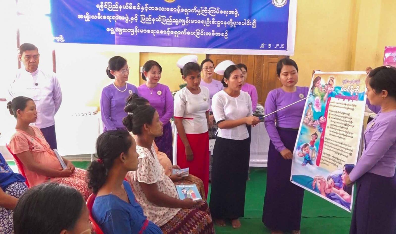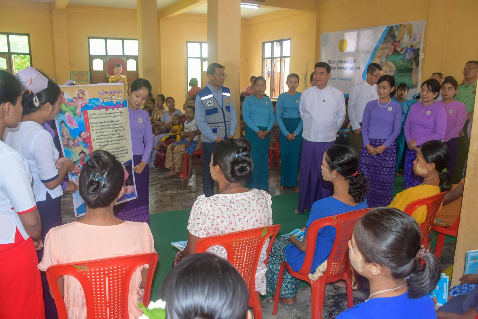 ရခိုင်ပြည်နယ်မိခင်နှင့်ကလေးစောင့်ရှောက်မှုကြီးကြပ်ရေးအဖွဲ့၊ အမျိုးသမီးရေးရာအဖွဲ့နှင့် ပြည်နယ်ပြည်သူ့ကျန်းမာရေးဦးစီးဌာနတို့ပူးပေါင်း၍ ယာယီနေရပ်စွန့်ခွာစခန်းများတွင် ရွှေ့လျားကျန်းမာရေးစောင့်ရှောက်မှုပေးခြင်းကို ယနေ့နံနက်ပိုင်းက စစ်တွေမြို့၊ ငါးစရိုင်းချောင်း ဘုန်းတော်ကြီးကျောင်းရှိ ယာယီနေရပ်စွန့်ခွာစခန်း၌ ဆောင်ရွက်လျက်ရှိရာ ရခိုင်ပြည်နယ်ဝန်ကြီးချုပ် ဦးထိန်လင်း၊ ပြည်နယ်မိခင်နှင့်ကလေးစောင့်ရှောက်မှုကြီးကြပ်ရေးအဖွဲ့နာယက ဒေါ်ဆွေဆွေမြတ်၊ ပြည်နယ်အစိုးရအဖွဲ့ဝင်များ၊ ပြည်နယ်ပြည်သူ့ကျန်းမာရေးဦးစီးဌာနမှူးနှင့် ဆရာဝန်၊ သူနာပြုများ၊ ပြည်နယ်၊ ခရိုင်၊ မြို့နယ်မိခင်နှင့် ကလေးစောင့်ရှောက်မှုကြီးကြပ်ရေးအဖွဲ့နှင့် အမျိုးသမီးရေးရာအဖွဲ့ဝင်များ တက်ရောက်ကြသည်။