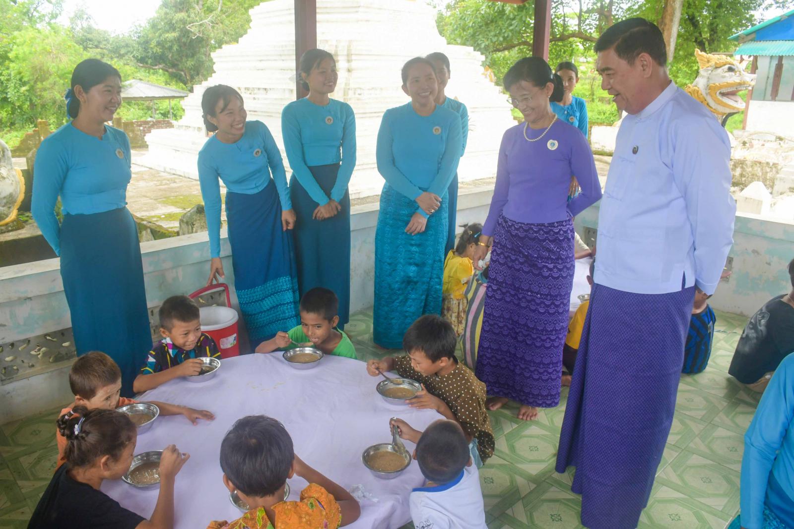 ဆက်လက်၍ ပြည်နယ်ဝန်ကြီးချုပ်နှင့်ဇနီးသည် မိခင်နှင့်ကလေးစောင့်ရှောက်မှုကြီးကြပ်ရေးအဖွဲ့၊ အမျိုးသမီးရေးရာအဖွဲ့ဝင်များက ယာယီနေရပ်စွန့်ခွာစခန်းရှိ ကလေးငယ်များအား အာဟာရ ဖြည့်စွက်စာများကျွေးမွေးနေမှုကို လှည့်လည်ကြည့်ရှုအားပေးကြပြီး ယာယီနေရပ်စွန့်ခွာစခန်းရှိ ရေကန်၌ သောက်သုံးရေသိုလှောင်ထားရှိမှု အခြေအနေအား ကြည့်ရှုစစ်ဆေး ခဲ့ကြကြောင်း သိရသည်။