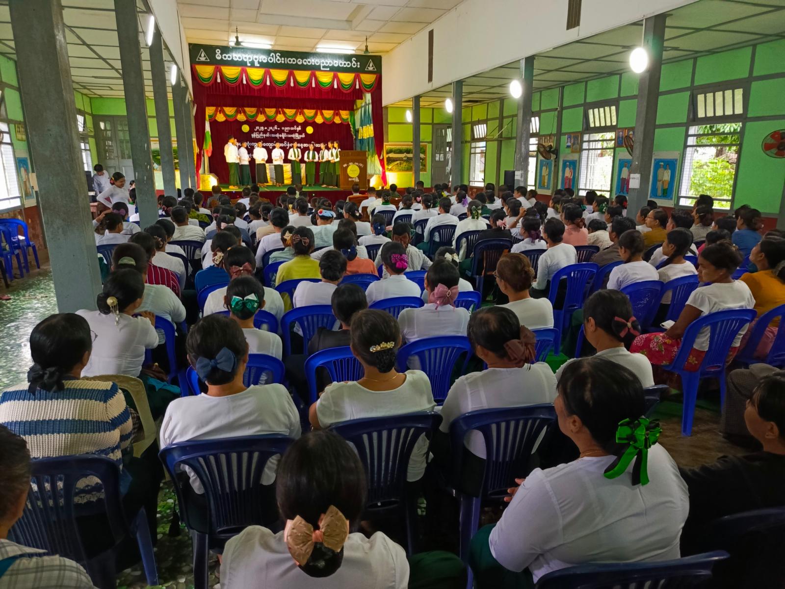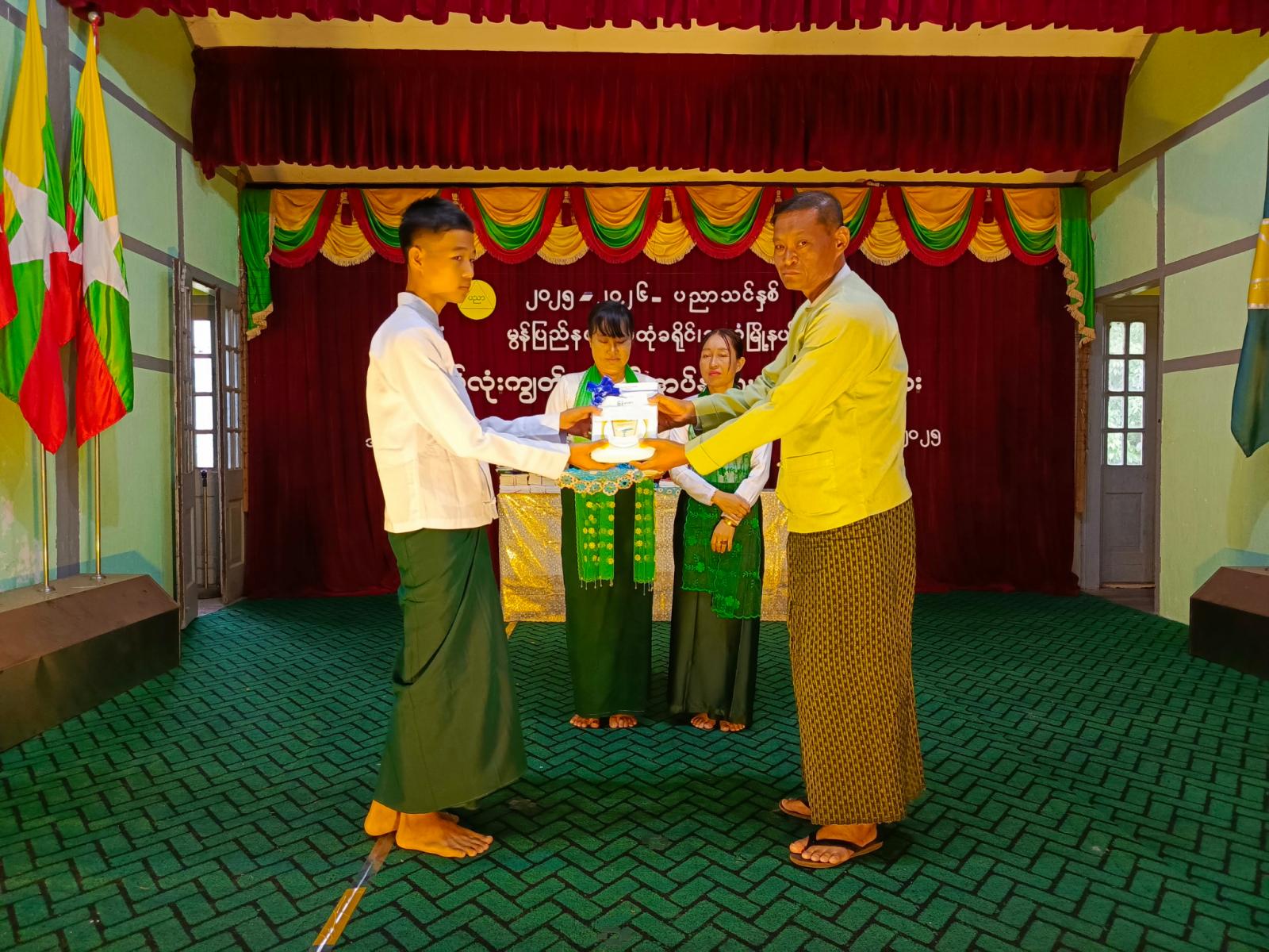 ဆက်လက်၍ သထုံခရိုင်စီမံအုပ်ချုပ်ရေးအဖွဲ့ခေတ္တဥက္ကဋ္ဌနှင့် အဖွဲ့ဝင်များ၊ မြိုနယ်စီမံအုပ်ချုပ်ရေးအဖွဲ့ဥက္ကဋ္ဌ ဦးဇော်မိုးစိုးနှင့် အဖွဲ့ဝင်များ၊ ခရိုင်ပညာရေးမှူး၊ မြို့နယ်ပညာရေးမှူးနှင့် တာဝန်ရှိသူတို့က ပညာရေးဝန်ကြီးဌာနမှ အခမဲ့ဖြန့်ဝေသည့် ကျောင်းသုံး ဗလာစာအုပ်၊ ပုံနှိပ်စာအုပ်၊ ကျောင်းသုံးပစ္စည်းများနှင့် ကျောင်းဝတ်စုံကို ထောက်ပံ့ပေးအပ်ရာ အခြေခံပညာကျောင်းအလိုက် ကျောင်းသား၊ ကျောင်းသူတို့က လက်ခံရယူခဲ့ကြသည်။