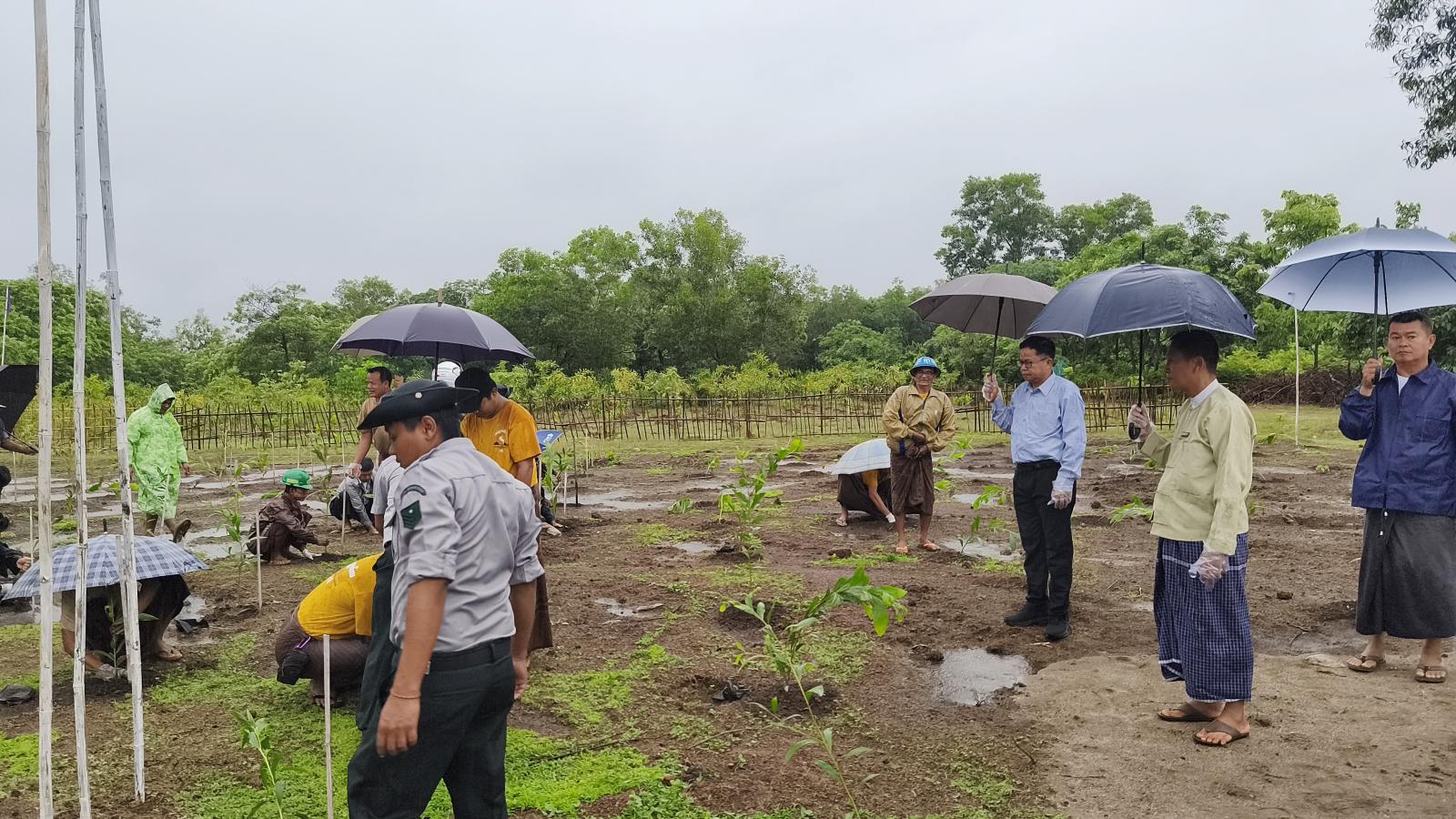 ရှေးဦးစွာ မုဒုံမြို့နယ်စီမံအုပ်ချုပ်ရေးအဖွဲ့ဥက္ကဋ္ဌ ဦးပြည်သိမ်းနှင့် အဖွဲ့ဝင်များ၊ မြို့နယ်သစ်တောဦးစီးဌာနမှူး ဦးကျော်ဇောအောင်နှင့် တာဝန်ရှိသူများက စိုက်ပျိုးမည့် ပျိုးပင်များ ပေးအပ်သည်။ သစ်ပင်စိုက်ပျိုးပွဲတွင် မြို့နယ်အဆင့် ဌာနဆိုင်ရာများ၊ မီးသတ်တပ်ဖွဲ့ဝင်များ၊ ကြက်ခြေနီတပ်ဖွဲ့၊ လူမှုကူညီရေးအသင်းတို့မှ အသင်းသားများနှင့် ပြည်သူများ အင်အား ၁၀၀ ခန့်က မန်ဂျန်ရှားပင် ၄၀၀၊ အော် ရီးရှားပင် ၄၀၀၊ မဟော်ဂနီပင် ၁၀၀၊ သင်္ကန်း ၅၀၊ ပျဥ်းမ ၅၀ တို့ကို သတ်မှတ်နေရာအသီးသီးတွင် တပျော်တပါးစိုက်ပျိုးခဲ့ကြသည်။