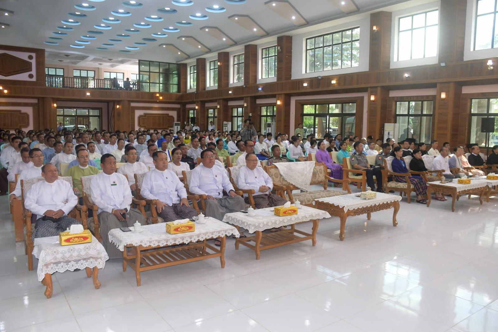 အခမ်းအနားတွင် ရခိုင်ပြည်နယ်ဝန်ကြီးချုပ် ဦးထိန်လင်းက ရခိုင်ပြည်နယ်အစိုးရအဖွဲ့သည် ရခိုင်ပြည်နယ်ရှိ ဒေသခံတိုင်းရင်းသားများ၏ ပညာရေး၊ ကျန်းမာရေး၊ စီးပွားရေးစသည့်ကဏ္ဍ အသီးသီးဖွံ့ဖြိုးတိုးတက်စေရန်နှင့် အလုပ်အကိုင်အခွင့်အလမ်းများ ရရှိလာစေရန်ရည်ရွယ်၍ ဒေသအခြေအနေနှင့်ကိုက်ညီသည့် သက်မွေးဝမ်းကျောင်း သင်တန်းများဖွင့်လှစ်ပေးလျက်ရှိရာ ယခုတိုင်းရင်းသားရေးရာ အသိပညာပေးဟောပြောခြင်းနှင့် ရပ်ရွာအခြေပြု အသက်မွေးဝမ်းကျောင်း ပညာလိုအပ်ချက်များအား ဆန်းစစ်စီမံခြင်းအစီအစဉ်ကို ကျင်းပပြုလုပ်ပြီး ယာယီနေရပ်စွန့်ခွာ စခန်းများတွင်နေထိုင်သည့် တိုင်းရင်းသားများထံမှ စစ်တမ်းကောက်ယူကာ စစ်တမ်းရလာဒ် အပေါ်မူတည်၍ လူမှုဘဝဖွံ့ဖြိုးတိုးတက်စေရေး အတွက် သက်မွေးဝမ်းကျောင်းသင်တန်းများကို ထပ်မံဖွင့်လှစ်ပေးသွားရန်ရှိကြောင်း၊ ပြည်နယ်တစ်ခုဖွံ့ဖြိုးတိုးတက်လာရန်အတွက် တစ်ဦးတစ်ယောက်ချင်းစီ၏ ဖွံ့ဖြိုးတိုးတက်မှု သည် အဓိကကျကြောင်း၊ ထို့ကြောင့် ရခိုင်ပြည်နယ် ဖွံ့ဖြိုးတိုးတက်ရေးကို အထောက်အကူ ပြုနိုင်ရန်၊ တိုင်းရင်းသားများ၏ လိုအပ်ချက်များကို သိရှိနိုင်ရန်၊ ပြည်နယ်အတွင်းနေထိုင်ကြသော တိုင်းရင်းသားတစ်ဦးချင်းစီအလိုက် ဖွံ့ဖြိုးတိုးတက်လာစေရန်နှင့် သက်မွေးပညာတတ်မြောက် ကျွမ်းကျင်လာပြီး မိမိဒေသအတွက် အကျိုးရှိစွာ ပြန်လည်အသုံးချနိုင်ရန်ရည်ရွယ်ပြီး ယခုအစီအစဉ်ကို ဆောင်ရွက်ခြင်းဖြစ်ကြောင်း၊ ဟောပြောပွဲသို့ တက်ရောက်လာကြသည့် စခန်းကိုယ်စားပြုတာဝန်ခံများက မိမိတို့စခန်းအတွင်းပြန်လည် ဟောပြောဆွေးနွေးနိုင်အောင် အလေးထား မှတ်သားကြရန်ပြောကြားလိုကြောင်း၊ ဟောပြောပွဲအပြီးတွင်လည်း တိုင်းရင်းသားများ၏ လက်ရှိလိုအပ်ချက်အခြေအနေမှန်များကို သိရှိနိုင်ရန် စစ်တမ်းကောက်ယူခြင်းအစီအစဉ်ကို ဆက်လက်ဆောင်ရွက်သွားမည်ဖြစ်ကြောင်း၊ တက်ရောက်လာကြသူများအနေဖြင့် အချက်အလက်များဖြည့်သွင်းရာတွင် မိမိ၏လွတ်လပ်သည့် အတွေးအခေါ်၊ ဆင်ခြင်ဉာဏ်များဖြင့် သုံးသပ်၍ ဖြည့်သွင်းမှသာ ဒေသနှင့်ကိုက်ညီပြီး မိမိတို့ဆန္ဒ ထင်ဟပ်ပေါ်လွင်နိုင်မည်ဖြစ်ကြောင်း၊ ရခိုင်ပြည်နယ်ကြီး အဘက်ဘက်က ဖွံ့ဖြိုးတိုးတက်ရေးနှင့် တည်ငြိမ်အေးချမ်းရေးအတွက် တိုင်းရင်းသားများ၏ အခန်းအကဏ္ဍသည် အလွန်အရေးကြီးခြင်းကြောင့် စုပေါင်းပြီးဆောင်ရွက်ရမည်ဖြစ်ကြောင်း၊ ထို့ကြောင့် အေးချမ်းသာယာပြီး ခေတ်မီဖွံ့ဖြိုးတိုးသော ရပ်ဝန်းတစ်ခုဖြစ်ပေါ်လာရေးအတွက် မလျော့သောဇွဲ၊ လုံ့လ၊ ဝီရိယတို့ဖြင့် အချင်းချင်းပူးပေါင်း ပါဝင်ဆောင်ရွက်သွားကြရန် ပြောကြားသည်။