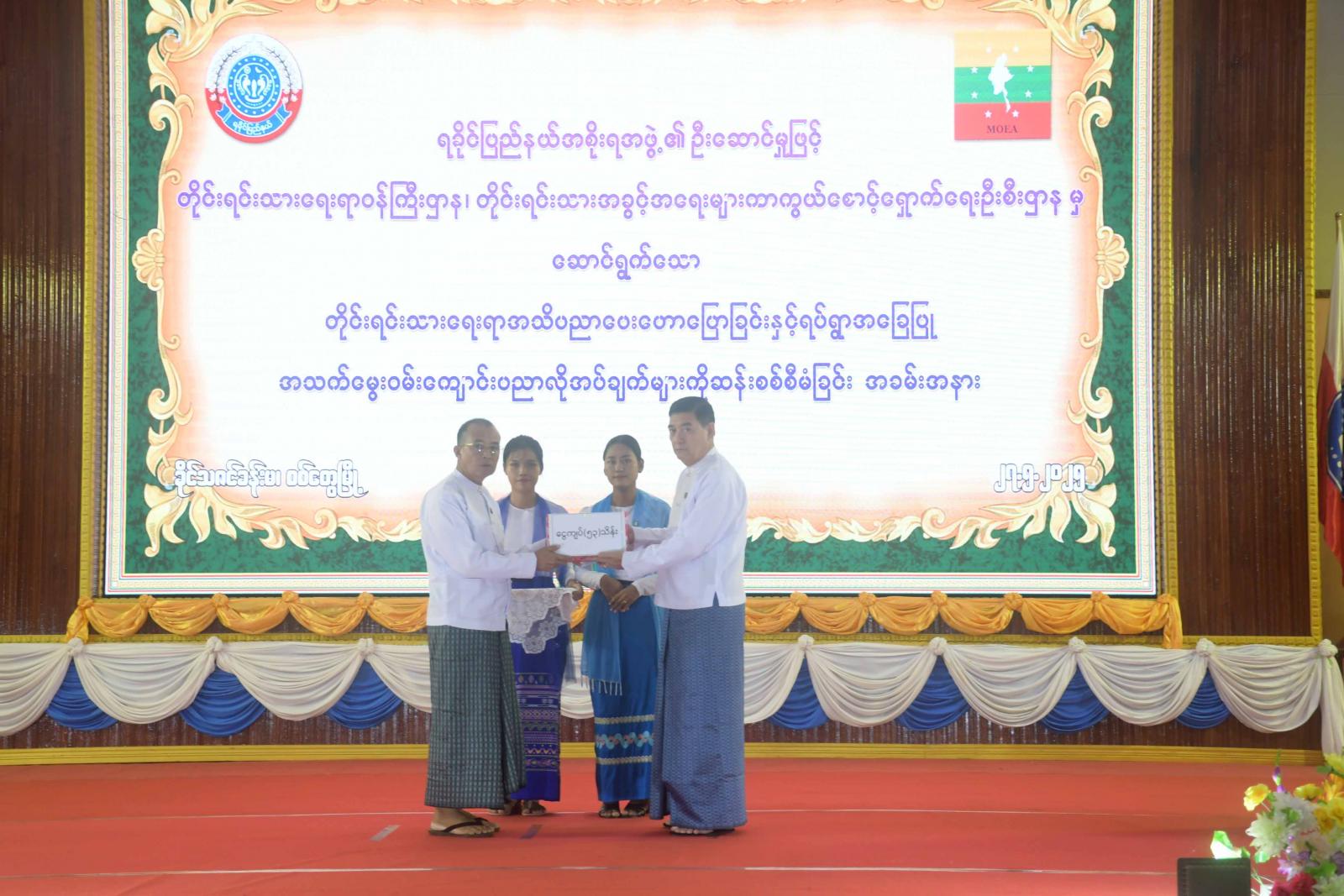 ဆက်လက်၍ ပြည်နယ်ဝန်ကြီးချုပ်က တိုင်းရင်းသားရေးရာအသိပညာပေး ဟောပြောခြင်းနှင့် ရပ်ရွာအခြေပြုအသက်မွေးဝမ်းကျောင်း ပညာလိုအပ်ချက်များအား ဆန်းစစ်ခြင်းအတွက် ချီးမြှင့်ငွေများကိုပေးအပ်ရာ ပြည်နယ်တိုင်းရင်းသားရေးရာဝန်ကြီးက လက်ခံရယူပြီး ပြည်နယ် ဝန်ကြီးချုပ်နှင့်ဇနီး တာဝန်ရှိသူများသည် အခမ်းအနားသို့တက်ရောက်လာကြသူ များအား ရင်းရင်းနှီးနှီး လိုက်လံနှုတ်ဆက်ခဲ့သည်။