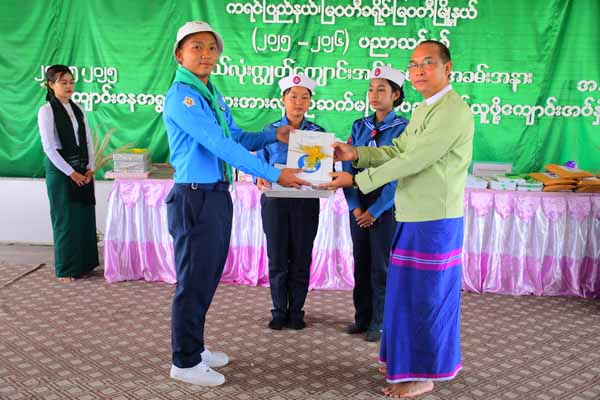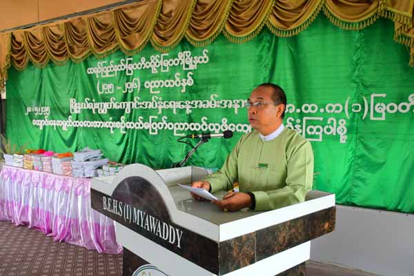 ထို့နောက် မြဝတီမြို့ ကုန်သည်ကြီးများအသင်းမှ နေလင်းမြင့် (NLM) ကုမ္ပဏီလီမိတက်ဥက္ကဋ္ဌ ဦးနေလင်းမြင့်က လိုအပ်မှုရှိသော အခြေခံပညာကျောင်းများသို့ Copy စာအုပ်ဒါဇင်တစ်ထောင်ကို ပေးအပ်လှူဒါန်းခဲ့ရာ ခရိုင်ပညာရေးကော်မတီဥက္ကဋ္ဌ ခရိုင်အုပ်ချုပ်ရေးမှူး ဦးကောင်းစံလင်းက လက်ခံရယူ၍ ဂုဏ်ပြုမှတ်တမ်းလွှာ ပြန်လည်ပေးအပ်ခဲ့ကာ မြို့နယ်ပညာရေးမှူး ဦးမိုးကျော်က ကျေးဇူးတင်စကားပြောကြားခဲ့ပြီး အ.ထ.က (၁) မြဝတီကျောင်းမှ ကျောင်းသား၊ ကျောင်းသူလေးများက ဇာတိမာန်သီချင်းဖြင့် သီဆိုဖျော်ဖြေခဲ့ကြသည်။