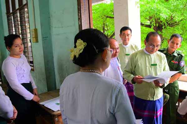 ယင်းနောက် ခရိုင်စီမံအုပ်ချုပ်ရေးအဖွဲ့ဥက္ကဋ္ဌနှင့် အဖွဲ့ဝင်များ၊ မြို့နယ်စီမံအုပ်ချုပ်ရေးအဖွဲ့ဥက္ကဋ္ဌနှင့် အဖွဲ့ဝင်များ၊ ခရိုင်/မြို့နယ်အဆင့်ဌာနဆိုင်ရာများက ကျောင်းအပ်နှံရေးဆောင်ရွက်နေမှုကို ကြည့်ရှု့အားပေးခဲ့ကြကြောင်း သိရသည်။