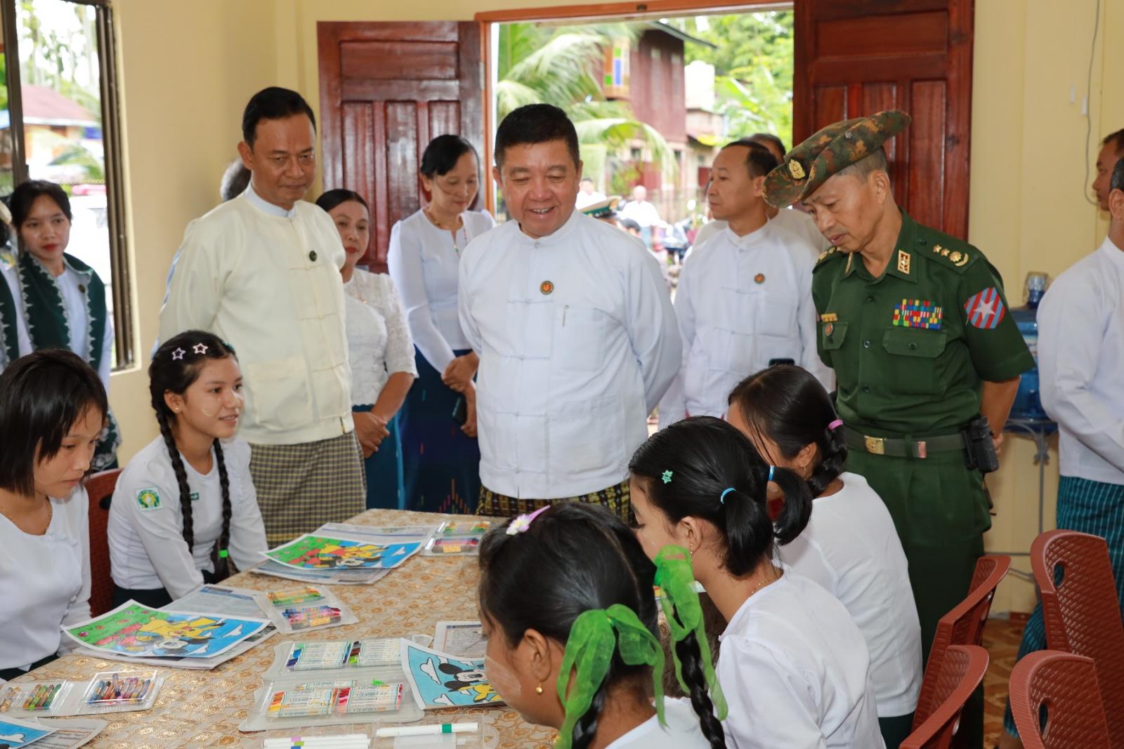 ထို့နောက် မွန်ပြည်နယ်ဝန်ကြီးချုပ်နှင့် ပြည်နယ်ဝန်ကြီးများက ကျောင်းအပ်နှံရာတွင် ကျောင်းသား၊ ကျောင်းသူများအတွက် အခမဲ့ပုံနှိပ်များ၊ ဗလာစာအုပ်၊ ဘောပင်၊ ခဲတံနှင့် ကျောင်းဝတ်စုံများအားပေးအပ်ခဲ့ပြီး ကျောင်းပတ်ဝန်းကျင် သန့်ရှင်းသာယာလှပရေးလုပ်ငန်းများအား အလေးထားဆောင်ရွက်ရန်၊ မကြာမီကာလအတွင်း ကျောင်းများဖွင့်လှစ်မည်ဖြစ်သောကြောင့် သွေးလွန်တုပ်ကွေးကြိုတင်ကာကွယ်ရေးနှင့် ခြင်များပေါက်ဖွားမှုမရှိစေရေးအတွက် အမှိုက်များ၊ မြက်များ၊ ချုံနွယ်များ စနစ်တကျ ရှင်းလင်းဆောင်ရွက်ရန်၊ စာသင်ခန်းများအတွင်း သန့်ရှင်းရေးနှင့် ခုံများအား ကြံ့ခိုင်မှုရှိစေရေးဆောင်ရွက်ကြရန် စသည်တို့ကို မှာကြားခဲ့သည်။
