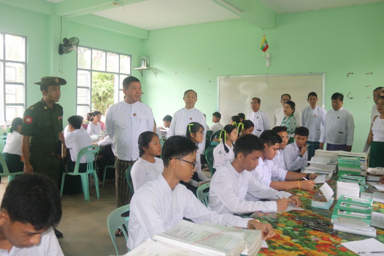 ထိုသို့ကြည့်ရှုရာတွင် ပြည်နယ်ပညာရေးမှူးနှင့် ကျောင်းအုပ်ဆရာမကြီးတို့က ကျောင်းအပ်နှံရေးနှင့်ပတ်သက်သည်များကို ရှင်းလင်းတင်ပြပြီး ကျောင်းအပ်နှံနိုင်ရေး လာရောက်ကြသည့် ကျောင်းသား၊ ကျောင်းသူများနှင့် မိဘအုပ်ထိန်းသူများအား ရင်းရင်းနှီးနှီး နှုတ်ဆက်ခဲ့ကြသည်။