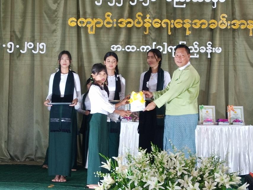 ထို့နောက် အထက(၂)ကျိုက်ထိုမှ ကျောင်းသား၊ ကျောင်းသူများက” ပန်းများဝေဆီပွင့်လေပြီ” တေးသီချင်းသီဆို၍ အခမ်းအနားကို ရုတ်သိမ်းခဲ့ကြောင်းသိရသည်။