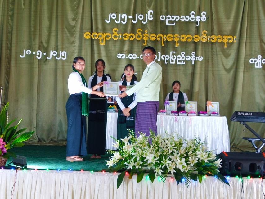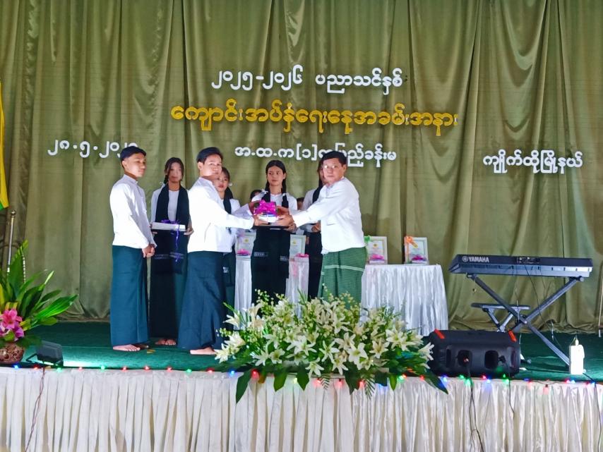 ဆက်လက်၍ ကျိုက်ထိုခရိုင်စီမံအုပ်ချုပ်ရေးအဖွဲ့ဥက္ကဋ္ဌဦးကံစောလှိုင်နှင့်အဖွဲ့ဝင်များ၊ မြိုနယ်စီမံအုပ်ချုပ်ရေးအဖွဲ့ဥက္ကဋ္ဌဦးတင့်လွင်နှင့်အဖွဲ့ဝင်များ၊ ခရိုင်ပညာရေးမှူး၊ မြို့နယ်ပညာရေးမှူးနှင့်တာဝန်ရှိသူတို့က ပညာရေးဝန်ကြီးဌာနမှ အခမဲ့ဖြန့်ဝေသည့် ကျောင်းသုံးဗလာစာအုပ်၊ ပုံနှိပ်စာအုပ်၊ ကျောင်းသုံးပစ္စည်းများနှင့် ကျောင်းဝတ်စုံကို ထောက်ပံ့ပေးအပ်ခြင်းနှင့် ခရိုင်အမျိုးသမီးရေးရာအဖွဲ့ဥက္ကဋ္ဌဒေါ်ခင်လှိုင်းဝေနှင့် မြို့နယ်မိခင်နှင့်ကလေးစောင့်ရှောက်ရေးအသင်းဥက္ကဋ္ဌဒေါ်စန်းစန်းအေးတို့က ဗလာစာအုပ်များကို ပေးအပ်လှူဒါန်းကြရာ အခြေခံပညာကျောင်းများအလိုက် ကျောင်းသားကျောင်းသူတို့က လက်ခံရယူခဲ့ကြသည်။