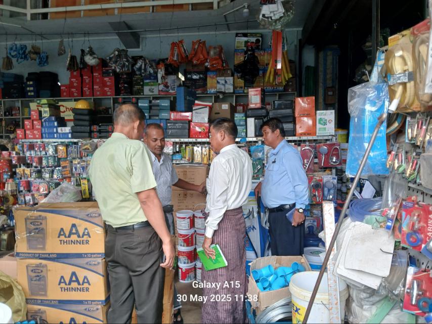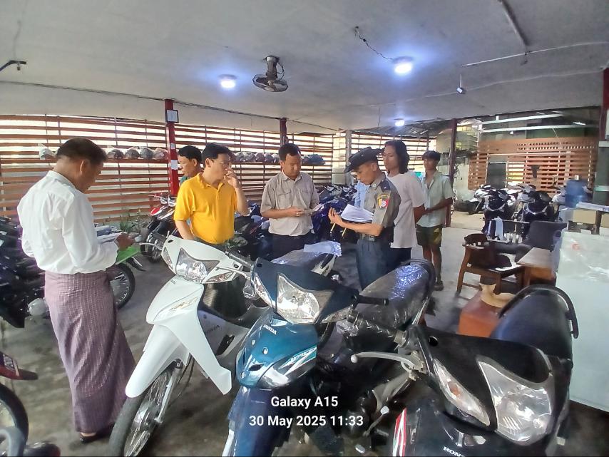 လိုက်လံစစ်ဆေးရာတွင် မြို့နယ်စီမံအုပ်ချုပ်ရေးအဖွဲ့ဥက္ကဋ္ဌ ဦးဇော်မိုးစိုးနှင့်အဖွဲ့ဝင်များ ဦးဆောင်မှုဖြင့် ခရိုင်ကုန်းလမ်းပို့ဆောင်ရေးဦးစီးဌာန၊ ခရိုင်ပြန်ကြားရေးနှင့်ပြည်သူ့ဆက်ဆံရေးဦးစီးဌာန၊ မြို့နယ်စားသုံးသူရေးရာဦးစီးဌာန၊ မြို့နယ်အခွန်ဦးစီးဌာန၊ မြို့နယ်စည်ပင်သာယာရေးအဖွဲ့၊ မြို့နယ်ရဲတပ်ဖွဲ့၊ သက်ဆိုင်ရာရပ်ကွက်အုပ်ချုပ်ရေးမှူးများနှင့် တာဝန်ရှိသူများပူးပေါင်းကာ သိမ်ကုန်းရပ်ကွက်နှင့် အောက်ကျင်းရပ်ကွက်တို့ရှိ ဆိုင်ကယ်နှင့် ဆိုင်ကယ်ပစ္စည်းအရောင်းဆိုင် ၄ ဆိုင်တို့အား လိုင်စင်မဲ့ ဆိုင်ကယ်များ ရောင်းချခြင်း ရှိ/မရှိနှင့် လိုင်စင်သက်တန်းလွန် ဆိုင်ကယ်များ ရှိ/မရှိတို့ကို ရှောင်တခင် စစ်ဆေး၍ သတ်မှတ်စည်းကမ်းများနှင့်အညီ ရောင်းချရေး၊ ဆိုင်ကယ်ဝယ်ယူသူတိုင်းအား ဆိုင်ကယ်စီးဦးထုပ်များ တစ်ပါတည်းရောင်းချပေးရေးတို့ကို ဆွေးနွေးမှာကြားခဲ့ကြကြောင်း သိရသည်။