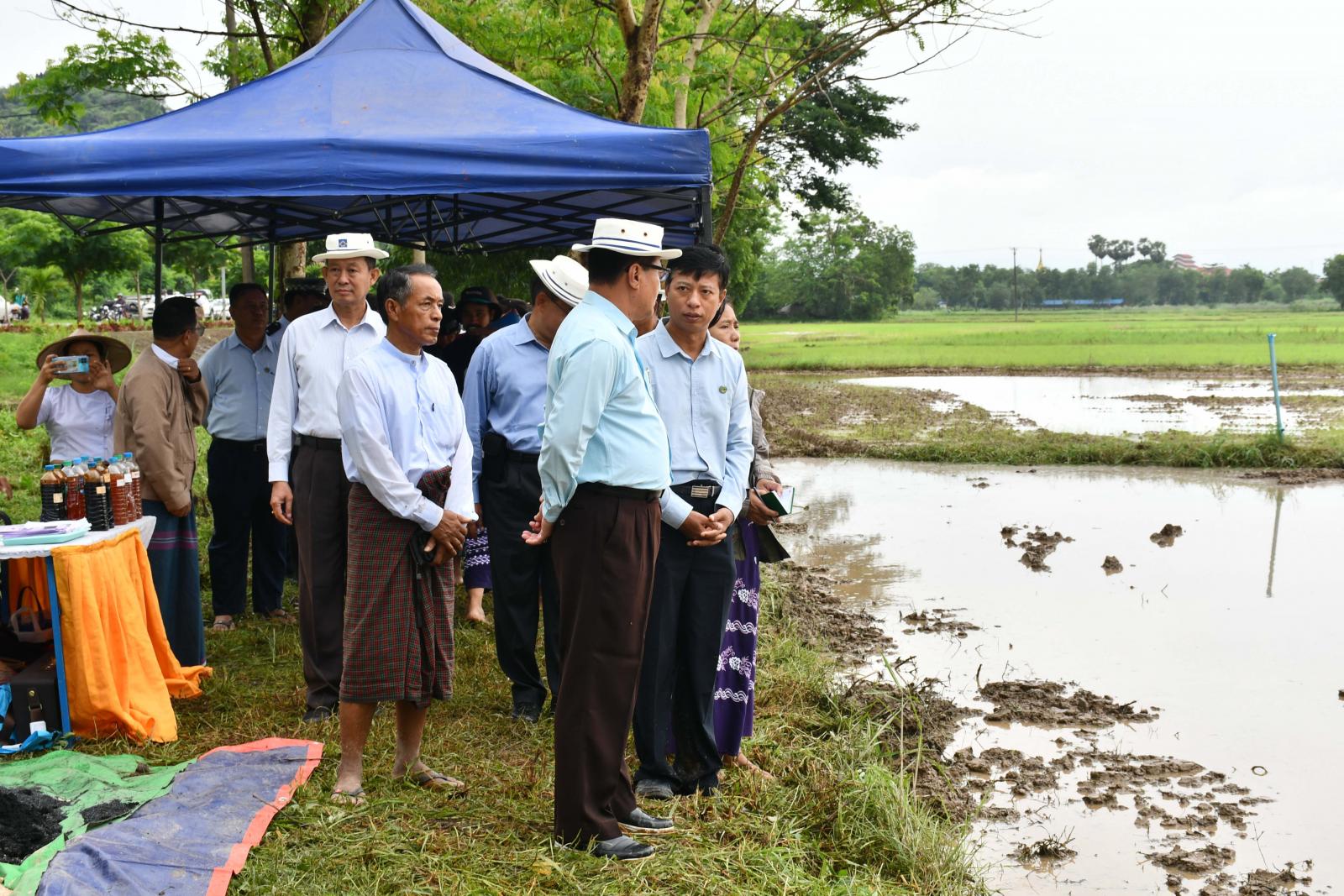 ဦးစွာ ပြည်နယ်ဝန်ကြီးချုပ်နှင့်တာဝန်ရှိသူများသည် ဘားအံမြို့၊ အမှတ် (၈) ရပ်ကွက်၊ ကွင်းအမှတ် ၁၁၈၄၊ ထောင်ဝိကွင်း၌ ပြည်နယ်စက်မှုလယ်ယာဦးစီးဌာန၊ အမှတ် (၂၀) စက်မှုလယ်ယာစခန်း (ဘားအံ)မှ ထွန်စက်ကြီး (၃) စီးဖြင့် မြေယာထွန်ယက်ပြုပြင်ခြင်းနှင့် ပြည်နယ်စိုက်ပျိုးရေးဦးစီးဌာန၊ မြေအသုံးချရေးဌာနခွဲမှ သဘာဝအီးအမ်စူပါ ဘိုကာရှီမြေဆွေးပြုလုပ်သုံးစွဲနည်းတို့ကို တရုတ်လှ၊ ရဲသာ(ကမော့ကစင်)၊ ထောင်ဝိ၊ ကော့ကျိုက်ကျေးရွာများမှ တောင်သူများနှင့်အတူ ကြည့်ရှုအားပေးခဲ့ကြပြီး ပြည်နယ်စိုက်ပျိုးရေးဦးစီးဌာန ဒုတိယပြည်နယ်ဦးစီးမှူး နော်သူးလေထီးက စူပါဘိုကာရှီပြုလုပ်သုံးစွဲခြင်း၏ အကျိုးကျေးဇူးများကို ရှင်းလင်းပြောကြားကာ ပြည်နယ်ဝန်ကြီးချုပ်က တောင်သူများကိုယ်တိုင် ပြန်လည်ပြုလုပ်သုံးစွဲကြရန် တိုက်တွန်းပြောကြားသည်။