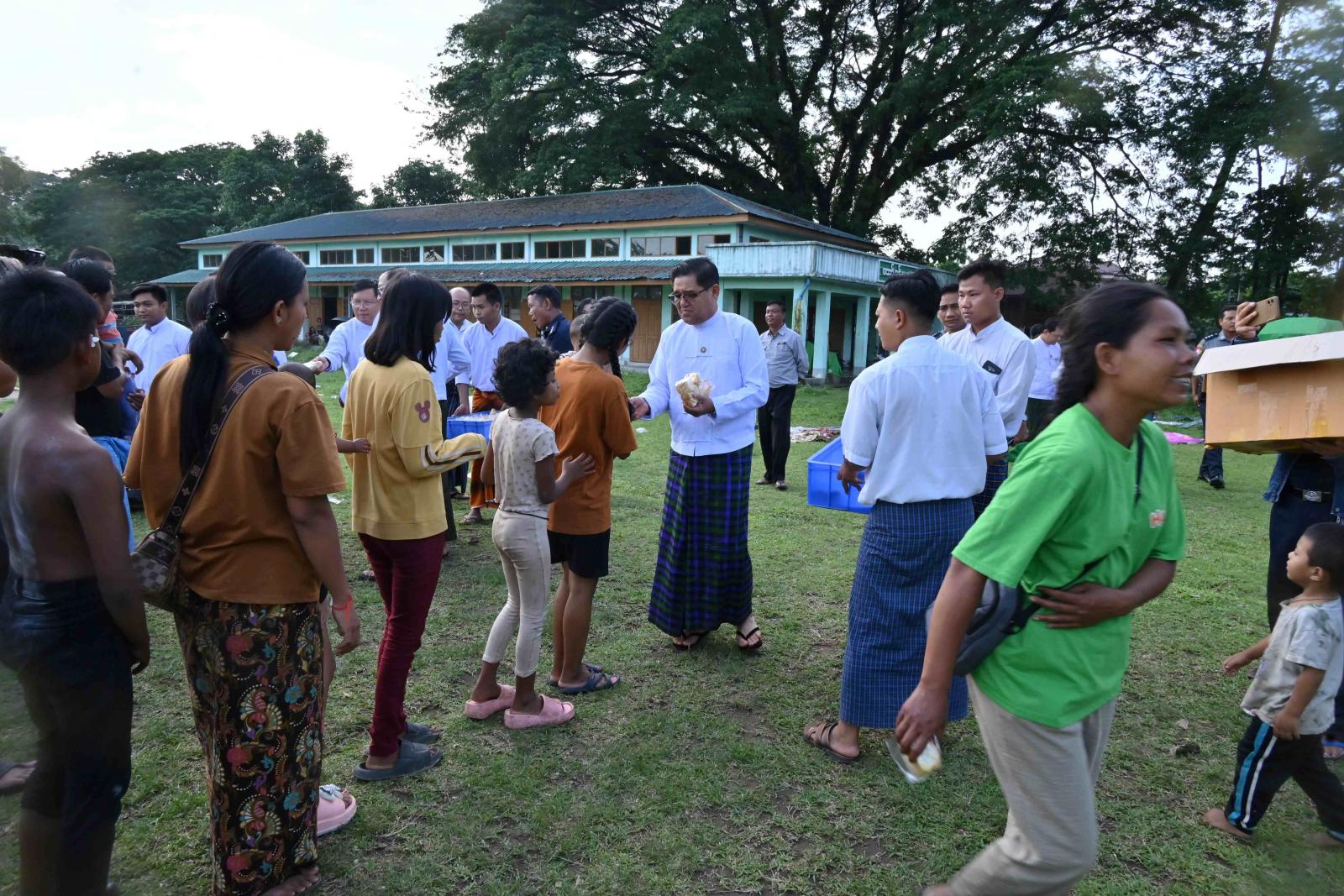 ယင်းနောက် ပြည်နယ်ဝန်ကြီးချုပ်နှင့် အဖွဲ့ဝင်များသည် မြေမြင့်ရပ်ကွက်၊ မြေမြင့်ဘုန်းတော်ကြီးကျောင်း ရေဘေးကယ်ဆယ်ရေးစခန်း၌ ရေဘေးသင့်ပြည်သူများအား ညနေစာထမင်းထုတ်များနှင့်မုန့်များကို ဖြန့်ဝေကျွေးမွေးခဲ့ကြပြီး အားပေးစကား ပြောကြားခဲ့ကြကြောင်း သိရသည်။