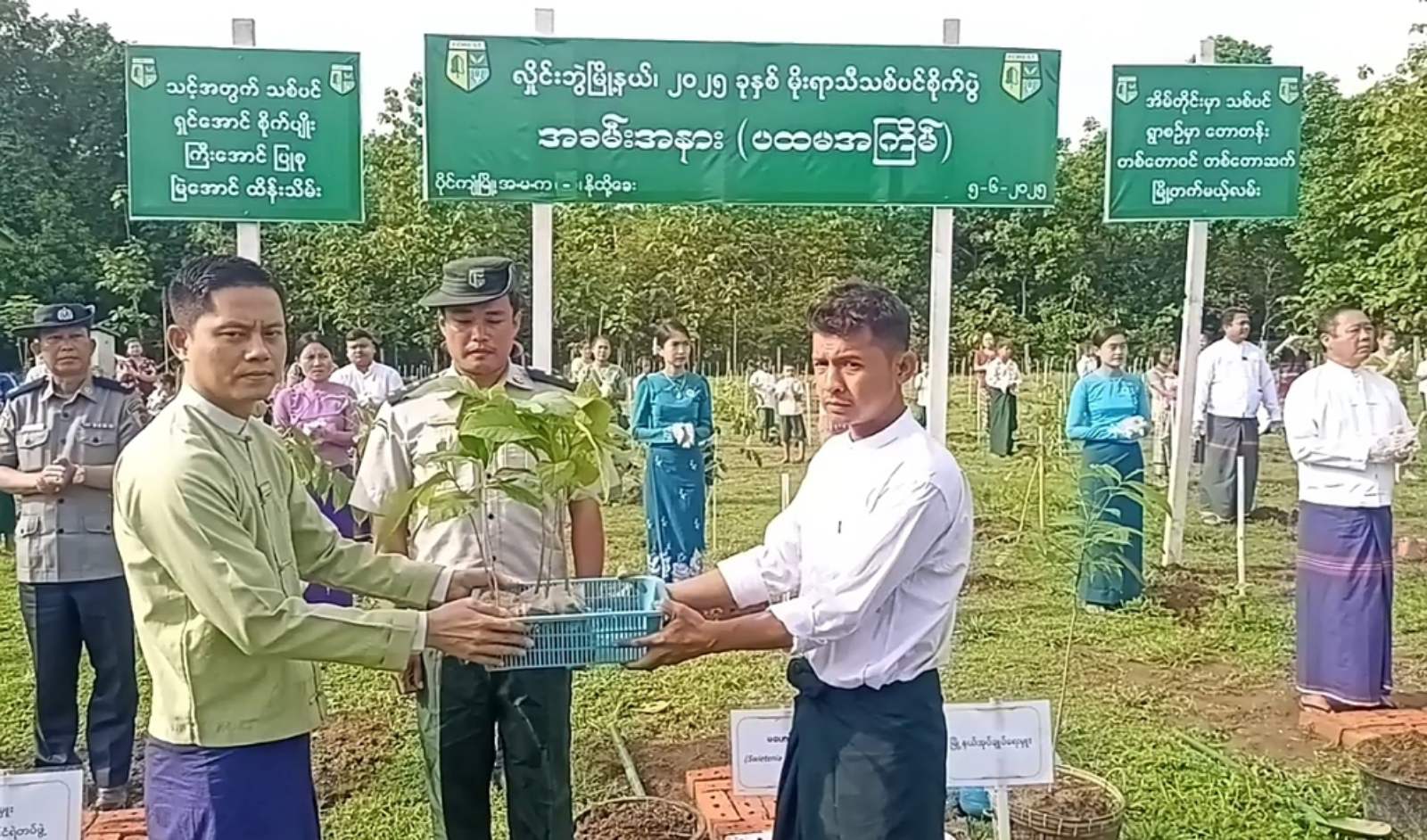 အခမ်းအနားတွင် လှိုင်းဘွဲမြို့နယ် စီမံအုပ်ချုပ်ရေးအဖွဲ့ဥက္ကဋ္ဌ ဦးထွန်းလင်းအောင်က ပတ်ဝန်းကျင်ဆိုင်ရာ ပြဿနာများကို ကမ္ဘာ့နိုင်ငံများက ဝိုင်းဝန်းပူးပေါင်း ထိန်းသိမ်းစောင့်ရှောက်လျက်ရှိကြောင်း၊ သဘာဝပတ်ဝန်းကျင်ထိန်းသိမ်းရေးအတွက် သစ်တောသစ်ပင်များပြုစုထိန်းသိမ်းခြင်းနှင့်ထပ်မံစိုက်ပျိုးခြင်းတို့ကို စဉ်ဆက်မပြတ်ဆောင်ရွက်ကြရမည်ဖြစ်ပြီး မြို့နယ်သစ်တောဦးစီးဌာနမှ အပင်များ ပျိုးထောင်ပြီး အခမဲ့ဖြန့်ဝေပေးလျက်ရှိကြောင်းနှင့်ပြည်သူများက သစ်တော၊ သစ်ပင်များ ဖြုန်းတီးမှု မရှိစေရန်၊ ထိန်းသိမ်းရှောက်ကြရန် လိုအပ်ကြောင်း အဖွင့်အမှာစကားပြောကြားပြီး မြို့နယ်စီမံအုပ်ချုပ်ရေးအဖွဲ့ဥက္ကဋ္ဌက အမှတ် (၁) အခြေခံပညာမူလတန်းကျောင်းအုပ်ဆရာကြီးထံ အမှတ်တရသစ်ပင်များ ပေးအပ်ခဲ့သည်။