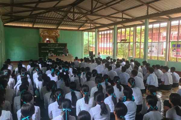 ထို့နောက် ဟောပြောသည့် အကြောင်းအရာအလိုက် အသိပညာဗဟုသုတရရှိစေရန် ပြန်လည် မေးမြန်းခြင်းများ ဆောင်ရွက်ခဲ့ပြီး မူးယစ်ဆေးဝါးအန္တရာယ်အသိပညာပေးနှင့် ယာဉ်စည်းကမ်း၊လမ်းစည်းကမ်းဆိုင်ရာအသိပညာပေး နံရံကပ်စာစောင်များ ခင်းကျင်း ပြသပေးထားရာ ကျောင်းသား၊ ကျောင်းသူများက စိတ်ပါဝင်စားစွာ လေ့လာဖတ်ရှုကြကြောင်း သိရသည်။