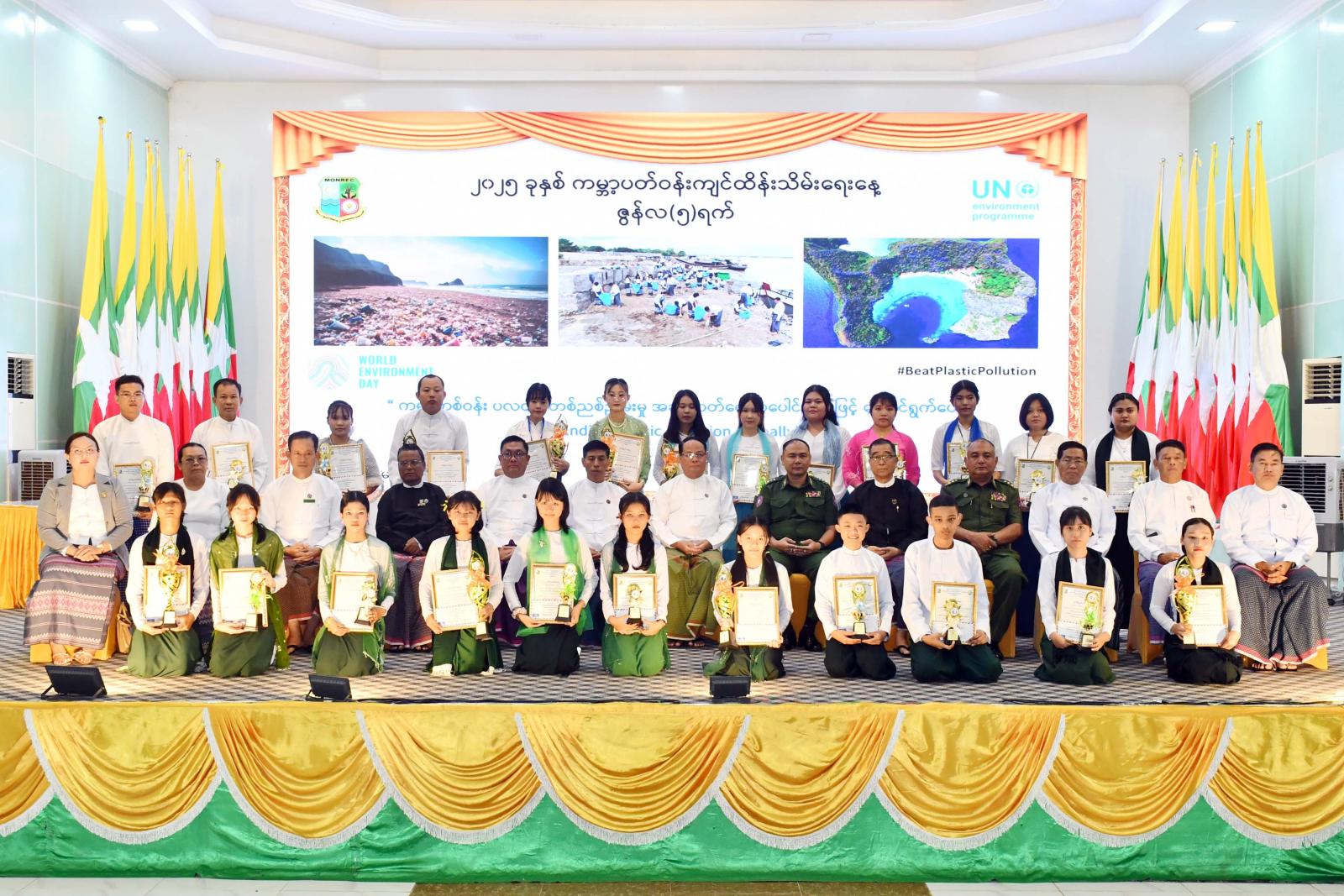 ထို့နောက် ပြည်နယ်ဝန်ကြီးချုပ်နှင့်အခမ်းအနားသို့တက်ရောက်လာသူများက ကုလသမဂ္ဂအထွေထွေအတွင်းရေးမှူးချုပ်၏ သဝဏ်လွှာဗီဒီယို၊ ကုလသမဂ္ဂပတ်ဝန်းကျင်အစီအစဉ်(UNEP)၏ ဗီဒီယိုနှင့် ၂၀၂၅ ခုနှစ်၊ ကမ္ဘာ့ပတ်ဝန်းကျင်ထိန်းသိမ်းရေးနေ့အထိမ်းအမှတ်အသိပညာပေး ဗီဒီယို တို့ကို ကြည့်ရှုခဲ့ကြပြီး ပြည်နယ်ဝန်ကြီးချုပ်၊ ပြည်နယ်အမျိုးသမီးရေးရာအဖွဲ့နှင့် ပြည်နယ်မိခင်နှင့် ကလေးစောင့်ရှောက်မှုကြီးကြပ်ရေးအဖွဲ့ နာယက၊ အရှေ့တောင် တိုင်းစစ်ဌာနချုပ်ဒုတိယတိုင်းမှူး၊ ပြည်နယ်တရားလွှတ်တော်တရားသူကြီးချုပ်နှင့် ပြည်နယ်အစိုးရအဖွဲ့ဝင်များက ပတ်ဝန်းကျင်စီမံခန့်ခွဲမှုကောင်းမွန်သော ကျေးရွာ၊ စက်ရုံ၊ အလုပ်ရုံနှင့် လုပ်ငန်းဆုရရှိကြသူများ၊ သန့်ရှင်း၍ စိမ်းလန်းစိုပြည်သော အထက်တန်း၊ အလယ်တန်း၊ မူလတန်းအဆင့်ကျောင်းများ၊ ကမ္ဘာ့ပတ်ဝန်းကျင်ထိန်းသိမ်းရေးနေ့အထိမ်းအမှတ် အလွတ်တန်းဆောင်းပါးပြိုင်ပွဲ၊ အဆင့်မြင့်ပညာ အဆင့်စာစီစာကုံးပြိုင်ပွဲ၊ အခြေခံပညာအထက်တန်း၊ အလယ်တန်းအဆင့်စာစီစာကုံးပြိုင်ပွဲ၊ မူလတန်းအဆင့်ပန်းချီပြိုင်ပွဲတို့တွင် ဆုရရှိကြသူများ၊ အခမ်းအနားဖြစ်မြောက်ရေးဝိုင်း ဝန်းကူညီ ပေးသူများအား ဂုဏ်ပြုဆုများပေးအပ်ချီးမြှင့်ကာ စုပေါင်းမှတ်တမ်းဓာတ်ပုံများရိုက်ကူးကြသည်။