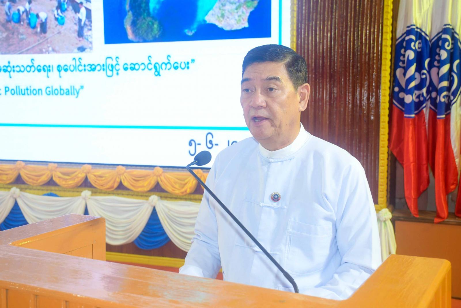 အခမ်းအနားတွင် ရခိုင်ပြည်နယ်ဝန်ကြီးချုပ် ဦးထိန်လင်းက ကမ္ဘာ့ပတ်ဝန်းကျင်ထိန်းသိမ်းရေးနေ့သည် လူသားများ အသက်ရှိင်နေထိုင်နိုင်သော တစ်ခုတည်းသော ကမ္ဘာမြေအတွက်အလွန်ထူးခြားလေးနက်သည့်နေ့ဖြစ်ပြီး နှစ်စဉ်နှစ်တိုင်း ကမ္ဘာ့နိုင်ငံအသီးသီးတွင် အမျိုးသားအဆင့်နှင့်ဒေသအဆင့် ပတ်ဝန်းကျင်ထိန်းသိမ်းရေးဆိုင်ရာ လှုပ်ရှားဆောင်ရွက်မှုများကို ကျင်းပခဲ့ကြကြောင်း၊ ကမ္ဘာ့နိုင်ငံ အသီးသီးမှပြည်သူများ ပတ်ဝန်းကျင်ထိန်းသိမ်းရေးလုပ်ငန်းများအပေါ် အာရုံစူးစိုက်မိလာစေရန်၊ ကမ္ဘာ့ မြေပေါ်တွင် ပတ်ဝန်းကျင်ထိခိုက်ပျက်စီးနေမှု ပြဿနာများအနက် နှစ်အလိုက်ဖြစ်ပွားပေါ်ပေါက် နေသည့် အရေးကြီးပြဿနာရပ်များ၊ အဓိကစိန်ခေါ်နေမှုများကိုပိုမိုသိရှိကာ အလေးထားဖြေရှင်း ဆောင်ရွက်လာကြစေရန် ရည်ရွယ်ပြီး ကမ္ဘာ့ပတ်ဝန်းကျင်ထိန်းသိမ်းရေးနေ့ အထိမ်းအမှတ်ဆောင်ပုဒ်များကို ၁၉၇၄ ခုနှစ်မှစ၍ နှစ်စဉ်ထုတ်ပြန် သတ်မှတ်ပေးခဲ့ကာ ၁၉၈၇ ခုနှစ်မှစ၍ အပြည်ပြည်ဆိုင်ရာ ကမ္ဘာ့ ပတ်ဝန်းကျင်ထိန်းသိမ်းရေးနေ့ အထိမ်းအမှတ်အခမ်းအနားများကို ကမ္ဘာ့နိုင်ငံအသီးသီးရှိ မြို့ကြီး များတွင် နှစ်စဉ်လှည့်လည်ကျင်းပခဲ့ကြောင်း၊ ယခုနှစ်၊ အပြည်ပြည်ဆိုင်ရာ ကမ္ဘာ့ပတ်ဝန်းကျင် ထိန်းသိမ်းရေးနေ့အခမ်းအနားကို ကိုးရီးယားသမ္မတနိုင်ငံ (ဂျယ်ဂျူ အထူးကိုယ်ပိုင်အုပ်ချုပ်ခွင့်ရဒေသ) မှာ “ကမ္ဘာတစ်ဝန်းပလတ်စတစ်ညစ်ညမ်းမှု အဆုံးသတ်ရေး၊ စုပေါင်းအားဖြင့် ဆောင်ရွက်ပေး”(Ending Plastic Pollution Globally)ဆောင်ပုဒ်ဖြင့် အိမ်ရှင်အဖြစ် လက်ခံကျင်းပလျက်ရှိကြောင်း၊ မြန်မာနိုင်ငံသည် ပင်လယ်ကမ်းရိုးတန်းရှည်လျားသော နိုင်ငံတစ်ခုဖြစ်သကဲ့သို့ ရခိုင်ပြည်နယ်၏ ပင်လယ်ကမ်းရိုးတန်းသည်လည်း ရှည်လျားသည့်အတွက် ကမ္ဘာ့နိုင်ငံများကဲ့သို့ ပင်လယ်သမုဒ္ဒရာများအတွင်း ပလတ်စတစ်ညစ်ညမ်းမှု အဆုံးသတ်စေရေးနှင့် စွန့်ပစ်အမှိုက်များစီမံခန့်ခွဲ စွန့်ပစ်နိုင်ရေးအတွက် ပြည်နယ်အတွင်းအစိုးရဌာနများ၊ ကုန်ပစ္စည်းထုတ်လုပ်သူနှင့် ရောင်းချနေသူများ၊ ပြည်သူ လူထုတစ်ဦးချင်းစီတို့ကလည်း ပူးပေါင်းလိုက်နာဆောင်ရွက်သွားရမည်ဖြစ်ကြောင်း၊ ယခုနှစ် ကမ္ဘာ့ပတ်ဝန်းကျင်ထိန်းသိမ်းရေး အထိမ်းအမှတ်နေ့ ဆောင်ပုဒ်နှင့်အညီ ကမ္ဘာ့တစ်ဝန်း ပလတ်စတစ်ညစ်ညမ်းမှု အဆုံးသတ်ရေးကို ပူးပေါင်းဆောင်ရွက်သွားနိုင်မည်ဖြစ်ကြောင်း၊ ပြည်သူများအားလုံး အနေဖြင့် မိမိတို့တစ်ဦးချင်း၊ တစ်အိမ်ချင်းစီမှ စွန့်ပစ်အမှိုက်များထွက်ရှိမှု လျော့ကျစေရန် မစွန့်ပစ်မီ အမှိုက်နှင့် ပတ်သက်သည့် လူတစ်ဦးချင်းလိုက်နာသင့်သော စနစ်ကို တစ်ဦးချင်းလိုက်နာရန် လိုအပ်ပြီး Reduce (တစ်ခါသုံးပစ္စည်းများအသုံးပြုမှု လျော့ချပြီးပတ်ဝန်းကျင်ညစ်ည
