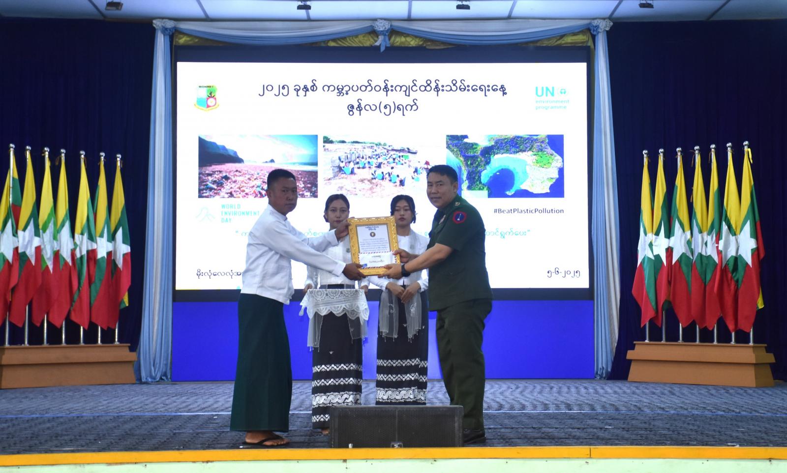 ဆက်လက်၍ ပြည်နယ်အစိုးရအဖွဲ့ဝင် လူမှုရေးရာဝန်ကြီး ဦးမိုးမင်းသိန်းက ကုလသမဂ္ဂ အထွေထွေအတွင်းရေးမှူးချုပ်၏ သဝဏ်လွှာအားဖတ်ကြားပြီး ၂၀၂၅ ခုနှစ်၊ ကမ္ဘာ့ပတ်ဝန်းကျင် ထိန်းသိမ်းရေးနေ့အထိမ်းအမှတ် အသိပညာပေးဗီဒီယိုကလစ်ဖွင့်လှစ်ပြသမှုကို ကြည့်ရှုခဲ့ကြကာ ပြည်နယ်လုံခြုံရေးနှင့် နယ်စပ်ရေးရာဝန်ကြီးနှင့် ပြည်နယ်ဝန်ကြီးများက ၂၀၂၄-၂၀၂၅ ဘဏ္ဍာနှစ်၊ ကချင်ပြည်နယ်အဆင့် သန့်ရှင်း၍ စိမ်းလန်းစိုပြည်သော ကျောင်းဆု ပထမ၊ ဒုတိယ၊ တတိယဆုရရှိသော အခြေခံပညာအထက်တန်းအဆင့်၊ အလယ်တန်းအဆင့်နှင့် မူလတန်းအဆင့် ကျောင်းများအား ဂုဏ်ပြုဆုများကိုလည်းကောင်း၊ ပြခန်းပါဝင်ပြသသည့် ဌာနဆိုင်ရာ အဖွဲ့အစည်းများအား ဂုဏ်ပြုမှတ်တမ်းလွှာများကိုလည်းကောင်း ပေးအပ်ချီးမြှင့်ခဲ့ကြသည်။